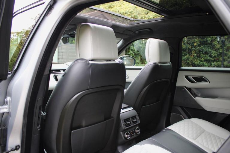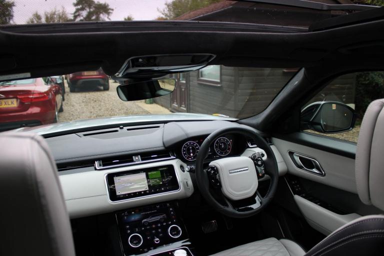 We are delighted to offer this very well presented Velar in indus silver with black and ivory full leather fitted with 15610 of factory options. Specification includes tilt and slide opening panoramic glass sunroof with retractable sunblind, meridian signature sound system, matrix laser led headlights with signature DRL, 4 zone climate control, surround camera system, park pack, pro services with wi fi hot spot, detachable towbar, traffic sign recognition and adaptive speed limiter, load space partition net, shadow interior trim finisher, touchscreen sat nav, dab radio, bluetooth, heated and cooled 20 way powered seats with driver/passenger memory with massage function, heated windscreen, heated steering wheel, folding mirrors, cooled glovebox, keyless entry and start, power tailgate and 21'' alloy wheels. Full Range Rover service history and 2 x keys present. Ghost immobiliser fitted. Call or visit our website for a finance quote (subject to status) No admin fees are charged. We specialise in privately owned high specification vehicles and endeavour to buy the best examples of the marques we sell. Old fashioned service with up to date product knowledge. 30 years of successful selling please check out our 5 Star reviews and buy with confidence. We would like to point out Autotrader's Price indicator is AI GENERATED and does not take into account many real world factors. We believe it is about selling the best we can which our vast knowledge affords us. Quality is the most important factor not buying the cheapest. As they say cheap today is dear tomorrow.