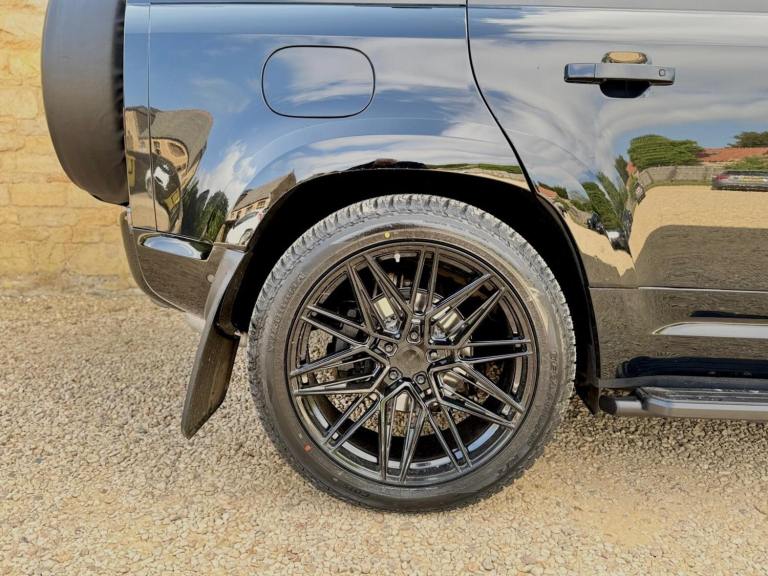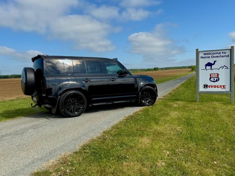 We are currently crafting a stunning Santorini black 2.0TDi automatic Defender 110 5 seater with a host of our Rivolve enhancements. Please appreciate that the images shown are of a similar Rivolve edition Defender recently built and supplied by the Nene Overland team. You may also notice the lack of spare wheel. Our client requested that we rework the Defender rear door as part of the enhancement package. We all feel it looks super cool with that clean wheel-less back end with overhanging rear roof spoiler. This one also rides on 20 multispoke alloys to give a larger depth of side wall for further ride comfort. Your choice, as we can supply it on 20 or 22 black multispoke alloy wheels. Standard HSE features include climate A/C, sat nav, Apple CarPlay, full black leather heated seats and cruise control. Please enquire as to how the build of GX20 EAG is going as available later this month. If you are looking for a specific spec of Defender 90 or 110, petrol hybrid, diesel or V8, please enquire as we continue to build and supply. £57,995 For information on the Rivolve Onyx Edition, please see the link below.