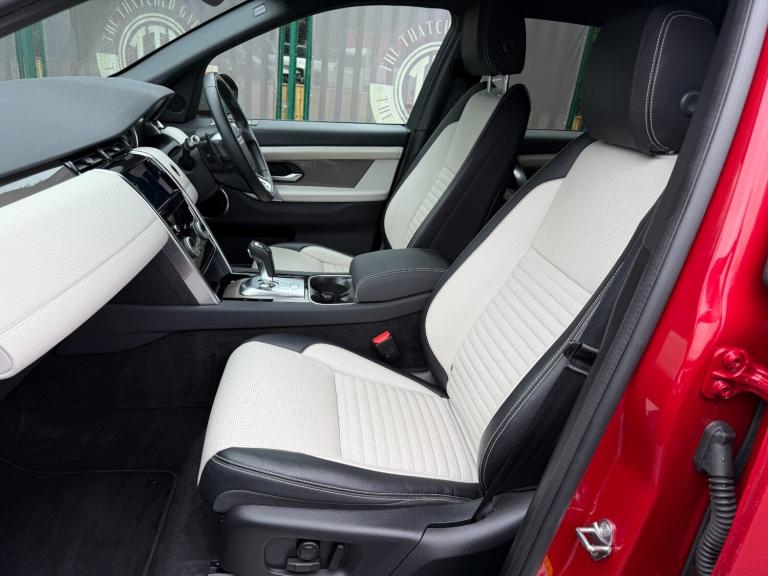 .Here we have a Land Rover Discovery Sport R-Dynamic S. The vehicle is finished in Firenze Red Metallic paint and has Silver alloy wheels. The vehicle has only had 2 owners from new and has a full service history, It will also leave us with a full service, new Mot & 6 Months Platinum warranty. Inside the vehicle is had Dual tone leather in Black & oyster. The front seats are electric and are also heated. It also has a black headlining and is fitted with 7 seats. It also has Led Lighting front & rear, Privacy glass, Heated front windscreen & heated washer jets. It is fitted with front & rear parking sensors and a reverse camera too. It also has daytime running lamps along with Cruise Control. You really can buy with confidence at The Thatched Garage as we are a family run business who has been specialising in Land Rovers for over 35 years..Android Auto, Apple CarPlay, Connected navigation pro, Driver condition monitor, InControl remote premium, Lane keep assist, PAS, Service interval indicator, Traffic sign recognition with adaptive speed limiter, Trip computer, All terrain progress control, Coil suspension system, Diesel particulate filter, Terrain Response 2, Bluetooth connectivity including audio streaming, Digital Audio Broadcast radio-DAB, Steering wheel mounted audio controls, Electric front/rear windows, Power fold, auto-dimming, heated door mirrors with approach lights, Rain sensing windscreen wipers, Rear wiper, Black gearshift paddles, Bright metal pedals, Front passenger isofix child seat attachment, Illuminated vanity mirrors, Rear headrests, Third row dual adjustable individual seats, Tilt/reach adjustable steering wheel, Online pack - Discovery sport, 3 point seatbelts on all seats, ABS, Brake hold function, Collision mitigation braking system, Cornering brake control (CBC), Driver/Front Passenger airbags, Drivers knee airbag, Electronic brake force distribution, Electronic parking brake, ESP + traction control, Hill descent control, Hill launch assist, Pedestrian airbag system, Roll stability control, Side and curtain airbags for front and 2nd row seats, Tyre pressure monitoring system, Battery Back Up System (BBUS) with tilt sensor, Intrusion sensor, Locking wheel nuts, Centre stack rails in noble chrome