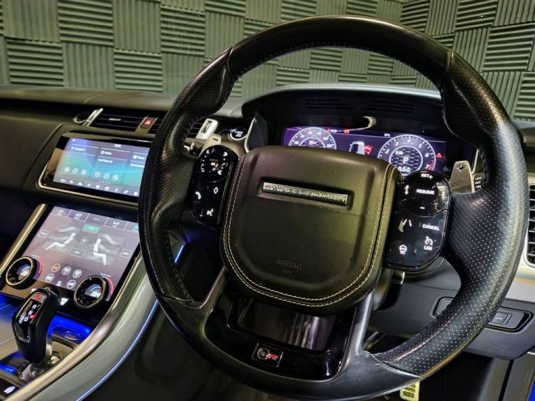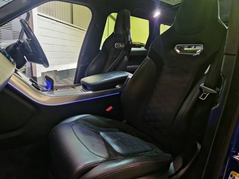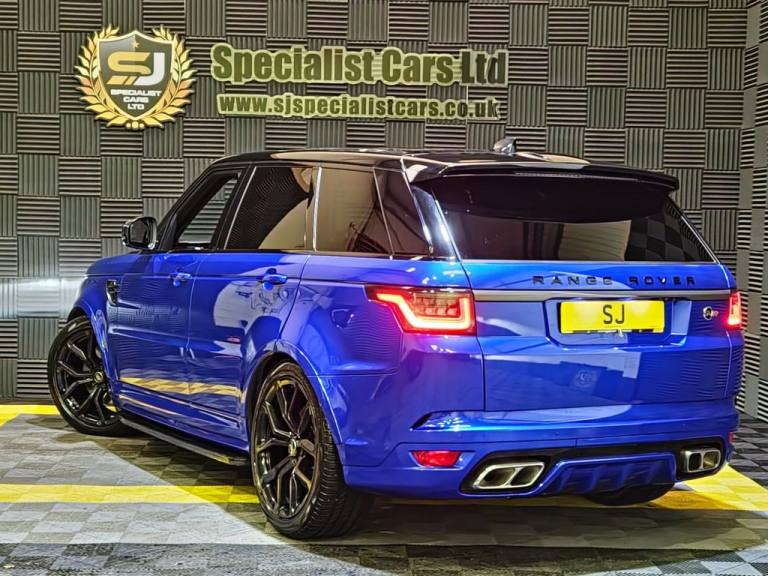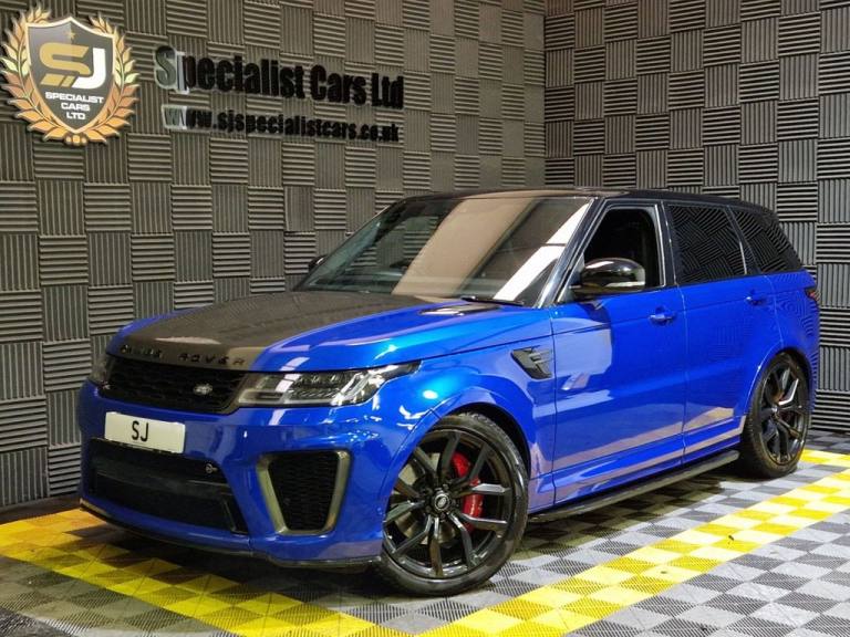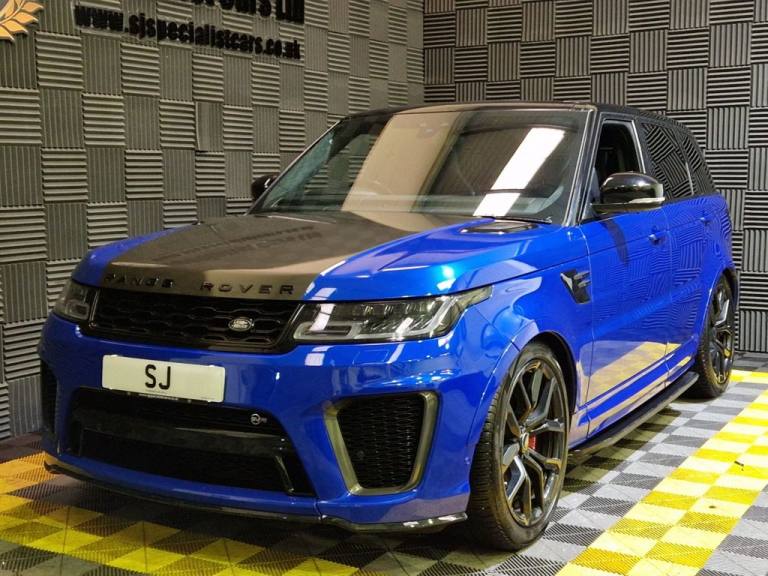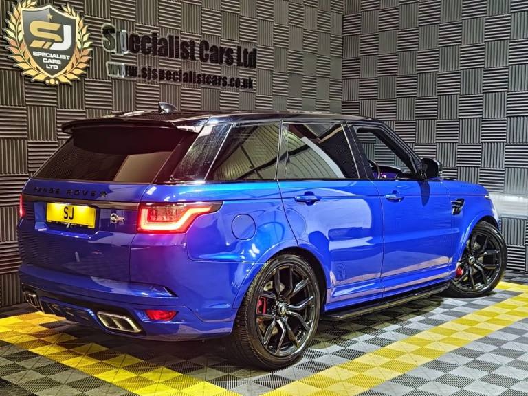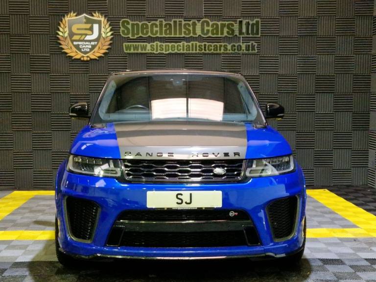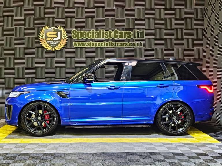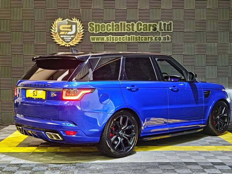 2020 / 70 Range Rover Sport SVR P575 Finished in Cost Option Velocity Blue Metallic with Ebony Leather. 52000 Miles, FSH. 22" Alloys, Wrapped Carbon Bonnet, Fridge in Centre Console, Privacy Glass, Heated Steering Wheel, Blind Spot Assist, Auto Adaptive Headlamps, Sliding Panoramic Sunroof, Meridian Surround Sound, Heated and Cooled Seats. Warranties , Finance and Part Exchange Available..22" Alloys, Fridge in Centre Console, Sliding Panoramic Sunroof, Heated Steering Wheel., Privacy Glass, 12V Power Socket, 21in Alloy Wheels - 5 Split Spoke Style 5091 with Satin Polish Finish, 360 Degree Parking Aid, 60-40 Folding Rear Seats, ABS - Anti Lock Braking System, ATPC - All Terrain Progress Control, Active Exhaust Control, Adaptive Cruise Control with Stop and Go, Adaptive Dynamics, All Terrain lnfo Centre, Aluminium Bonnet, Aluminium Gearshift Paddles, Android Auto, Apple CarPlay, Auto-Dimming Interior Mirror, Auto-Dimming Power Fold - Heated Door Mirrors with Memory and Approach Lights, Automatic Headlights, Blind Spot Monitor, Bluetooth Connectivity, Body Coloured Side Sills and Bumper Corners, Brake Pre-fill, Bright Metal Pedals, CBC - Cornering Brake Control, Centre Console with Armrest, Clear Exit Monitor, Configurable Dynamics, Configurable Interior Mood Lighting, Contrast Painted Roof - Narvik Black, Customer Configurable Autolock, Customer Configurable Single Point Entry, DAB - Digital Audio Broadcast, DSC - Dynamic Stability Control, Driver Condition Monitor, Driver and Passenger Airbags, EBA - Emergency Brake Assist, EBD - Electronic Brake-Force Distribution, EPAS - Electronic Power Assisted Steering, EPB - Electronic Park Brake, ETC - Electronic Traction Control, Electric Windows with One-Touch Open-Close and Anti-Trap, Electrically Adjustable Steering Column, Electronic Active Differential with Torque Vectoring by Braking, Emergency Braking, Extended Leather Upgrade, Extended Satin Brushed Aluminium Trim Finisher, Follow Me Home Lighting, Front Door Storage Space, Front and Rear Cupholders, Front and Rear Grab Handles, Front and Rear Recovery Eyes, Glovebox - Lockable, Gradient Acceleration Control - GAC, Gradient Release Control, HDC - Hill Descent Control, Heated Front and Rear Seats, Heated Rear Window, Heated Steering Wheel, Heated Windscreen with Heated Washer Jets, High Speed Emergency Braking, Hill Launch Assist, ISOFIX Child Seat Anchor Points, Illuminated Metal Treadplates with Brand-Name Script, InControl Apps, InControl Protect, Interactive Driver Display, Intrusion Sensor, Keyless Entry, Laminated Acoustic Front and Toughened Rear Side Glass, Lane Departure Warning, Lightweight Exhaust System, Loadspace Compartment Light, Loadspace Cover, Loadspace Mounting Provisions, Locking Wheel Nuts, Low Traction Launch, Meridian Surround Sound System 825W, Navigation Pro, Non Smokers Pack, Pixel LED Headlights with Signature D