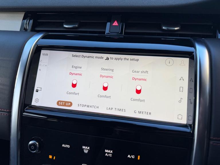 Carpathian Grey Metallic, Ebony Windsor leather with mars red stitch, Panoramic roof with power blind, 20 Gloss Black alloys, Black Ext pack, Heated steering wheel, Privacy glass, Satin chrome paddles, 14 Way heated electric seats with driver 3 position memory, Powered tailgate, Climate control, Pivi Pro, Navigation Pro, Wireless charging, Wireless Android Auto & Apple CarPlay, Meridian Sound, Front & rear parking sensors, 3D Surround Camera, Heated windscreen, Premium LED headlights, Auto high beam assist, Wade sensing, Interactive driver display, Keyless entry, ClearSight rear view mirror, Powerfold heated mirrors with auto dimming & approach lights, illuminated treadplates, Traffic sign recognition, Adaptive Cruise control, Blind Spot Assist, LKA, Rear collision monitor, Configurable Dynamics, Detachable tow pack, Terrain Response 2, Bright pedals, Roof rails, Side steps, LR Secure Tracker. Ongar Bridge 12 Months Parts & Labour Guarantee.