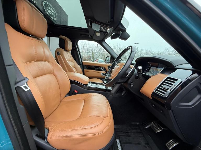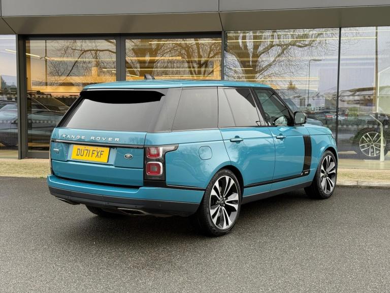 **FULL LAND ROVER SERVICE HISTORY + 12 MONTHS JLR WARRANTY**, BLACK PACK, PANORAMIC SUNROOF, DEPLOYABLE TOW BAR, REAR CAMERA, SVO PAINT TUSCAN BLUE, AIR SUSPENSION, 22'' ALLOY WHEELS, CENTRE CONSOLE FRDIGE, DIGITAL TV, MERIDIAN SURROUND SOUND SYSTEM, VOICE CONTROLS, SAT NAV, DAB, 24-WAY HEATED AND COOLED FRONT MASSAGE SEAT WITH EXECUTIVE REAR SEATS, FRONT ELECTRIC MEMORY SEATS, CONFIGURABLE CABIN LIGHTING, KEYLESS ENTRY AND PUSH BUTTON START HEATED FRONT WINDSCREEN **FOR THOSE WINTER MORNINGS**, HEATED STEERING WHEEL, ADAPTIVE CRUISE CONTROL, BLIND SPOT ASSIST, CABIN AIR IONISATION, SOFT CLOSE DOORS, LUMBAR SUPPORT, POWERED TAILGATE, APPLE CARPLAY, ANDROID AUTO - HARWOODS LANDROVER BASINGSTOKE are delighted to offer this Land Rover Range Rover 5.0 P525 V8 Fifty SUV 5dr Petrol Auto 4WD Euro 6 (s/s) (525 ps) - Be assured all approved Land Rovers are offered with a minimum 12 months Land Rover approved warranty and European roadside assistance. Our Land Rover Technicians carry out a 169-point check on every vehicle, as well as independent mileage and history checks. **(Due to us being a Landrover approved centre we are unable to offer Urban or Overfinch converted vehicles)****(As a Landrover approved centre we can service Urban or Overfinch converted vehicles too)***** We are proud to be part of the Harwoods group, a family run business established in 1931** With 7 Approved Land Rover retailers within our group, we have access to over 500 vehicles. If this isn't the right car for you, please contact us and we will find it. We look forward to seeing you***