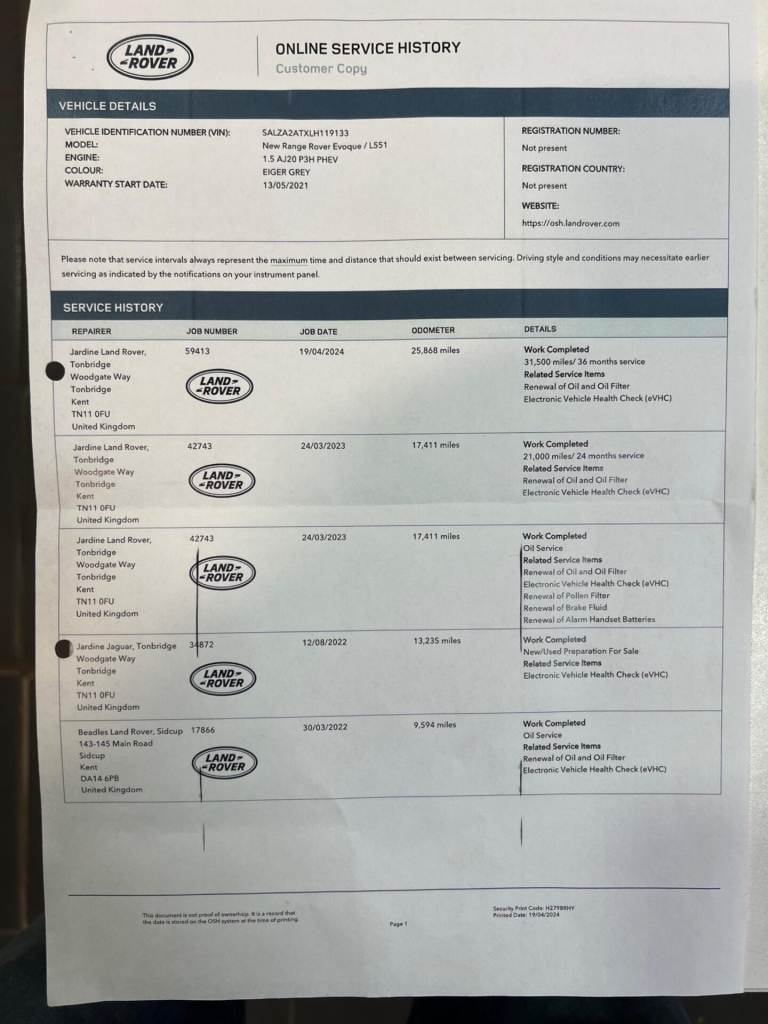 Posting for 11+ years2021 Land Rover Range Rover Evoque 1.5 P300e 12.2kWh R-Dynamic S Auto 4WD Euro 6 (s/s) 5dr SUV Hy...