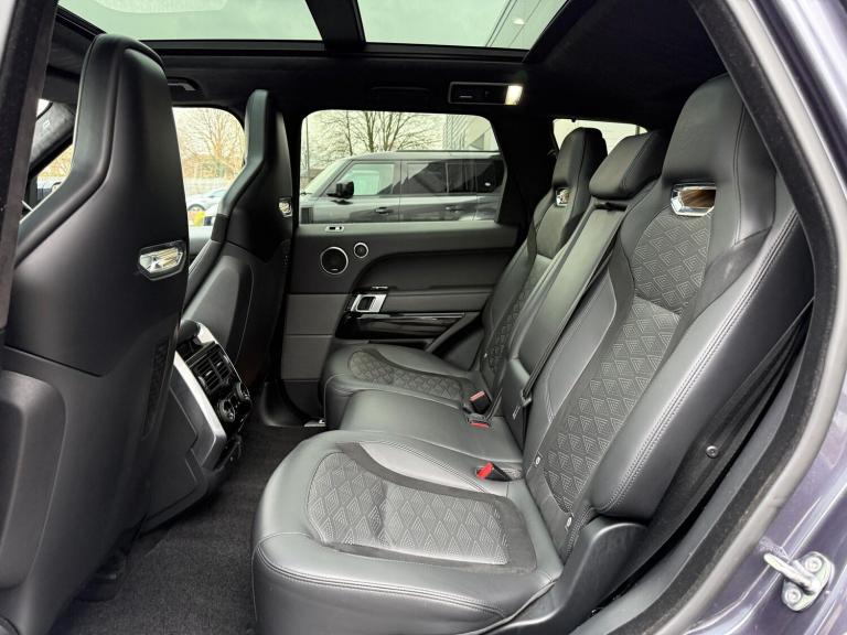 **12 MONTH JLR WARRANTY + FULL LAND ROVER SERVICE HISTORY**, SVO ULTRA METALLIC PAINT IN AMETHYST GREY, PANORAMIC SUNROOF, REAR CMAERA, CENTRE CONSOLE FRIDGE, 22'' FORGED GLOSS BLACK ALLOY WHEELS, SECURE TRACKER PRO **SUBSCRIPTION REQUIRED**, CABIN AIR IONISATION WITH PM2.5 FILTER, PRIVACY GLASS, SAT NAV, DAB, FOUR ZONE CLIMATE CONTROL, DOMESTIC PLUG SOCKET, CD/DVD PLATER, ACTIVE EXHUAST BUTTON, AIR SUSPENSION, EXTENDED LEATHER UPGRADE, LUMBAR SUPPORT, FRONT ELECTRIC MEMORY SEATS, HEATED FRONT AND REAR SEATS, 60/40 FOLDING REAR SEATS, ISOFIX, HEADLIGHT POWER WASHERS, KEYLESS ENTRY AND PUSH BUTTON START, POWERED TAILGATE, VOICE CONTROL, APPLE CARPLAY, ANDROID AUTO - HARWOODS LANDROVER BASINGSTOKE are delighted to offer this Land Rover Range Rover Sport 5.0 P575 V8 GPF SVR SUV 5dr Petrol Auto 4WD Euro 6 (s/s) (575 ps) - Be assured all approved Land Rovers are offered with a minimum 12 months Land Rover approved warranty and European roadside assistance. Our Land Rover Technicians carry out a 169-point check on every vehicle, as well as independent mileage and history checks. *** We are proud to be part of the Harwoods group, a family-run business established in 1931. With three Approved Land Rover retailers within our group, we have access to over 500 vehicles. If this isn't the right car for you our Group stock has specification to include Sunroof, Leather, Heated Seats, Apple Car Play, Heated Steering Wheel, Reverse Camera, Rear Entertainment, Deployable Towbar, 360-degree camera, Meridian Audio, Panoramic Sun Roof, Tow Bar, Black Pack, Air Suspension, Adaptive Cruise, Apple Carplay, Massage Seats, Dynamic Pack, Head up Display, Hard Top, Utility,