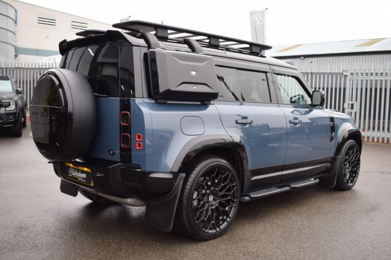 October 2022 72 Land Rover Defender 110 URBAN 3.0 D300 MHEV X-Dynamic SE Auto 4WD finished in rare and sought after Tasman Blue Metallic with Ebony Windsor/Robustec interior. 20950 miles covered, supported with Land Rover and specialist service history with most recent service completed by Marshall Land Rover Peterborough in August 2025. Presented in excellent condition throughout and supplied with all correct documentation, handbooks etc and subjected to our usual strict pre delivery inspection and preparation process ensuring all cosmetic and mechanical elements are in good order. This 110 benefits from an ever popular URBAN Automotive exterior conversion. The result is a fantastic specification example befitting from the following upgrades, including but not limited to: gloss black extended wheel arches, URBAN badging/branding pack, URBAN 23 gloss black UC-6 alloys, URBAN high power roof light bar, URBAN premium spare wheel cover, smoked rear lights, URBAN Best of British bonnet vents, black side steps, wind deflectors, 110 bonnet decal, gloss black rear spoiler plus various Land Rover Explorer Pack accessories including raised air intake (snorkel), expedition roof rack, exterior side-mounted gear carrier. Equally great factory spec thanks to the impressive X-Dynamic SE equipment list plus a host of optional extras and packages. Highlights including: Sliding Panoramic Sunroof, 11.4in Touchscreen, Family Pack, Cold Climate Pack, Air Suspension Pack, 60-40 Load Through Rear Seats with Manual Slide and Recline and Centre Armrest, Leather Steering Wheel, 12-Way Heated - Electric Memory Front Seats, 2-Zone Automatic Climate Control, 20in Full Size Spare Wheel, 360 Degree Parking Aid with 3D Surround Camera, Adaptive Dynamics, Apple CarPlay, Android Auto, Assisted Tailgate with Soft Close, Blind Spot Assist, Black Contrast Roof, Keyless Entry, Lane Keep Assist, Meridian Sound System, Pivi Pro - Connected, Premium LED Headlights with Signature DRL and more.