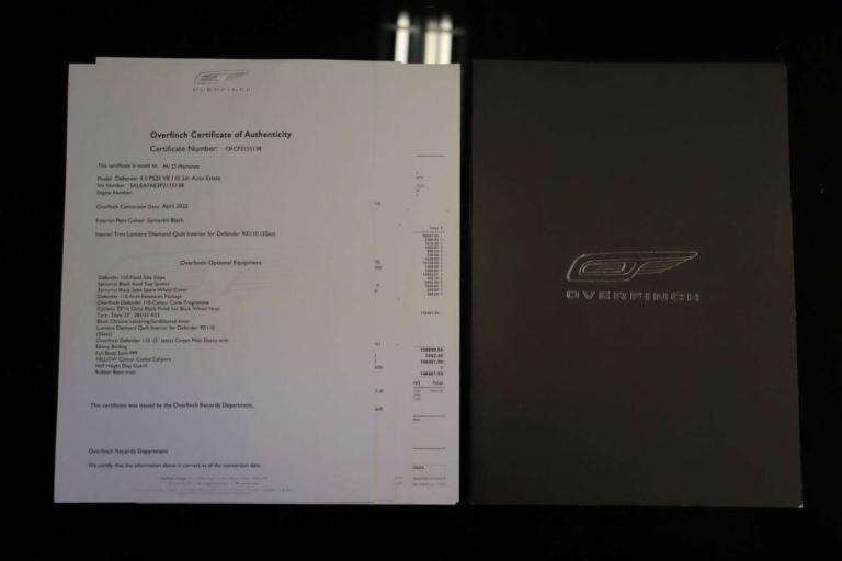 Just Arrived Into Stock - Here We Are Proud To Present The Land Rover Defender 5.0 P525 V8 - Overfinch! Previously Owned By A Premiership Footballer, This Impressive Example Is Equipped With A Powerful 5.0L Petrol Engine And A Robust Four Wheel Drive System, Ensuring Capability In All Conditions. As A Euro 6 Compliant Vehicle, It Meets Modern Emissions Standards, And Its Substantial Towing Weight Of 3500 Kg Makes It Ideal For A Variety Of Tasks. With Only One Former Keeper, Kitted With A Full Overfinch Kit Including Interior Conversion - This Is An Extremely Rare Example And Not One You Want To Miss Out On! OVERFINCH OPTIONAL EQUIPMENT:- Defender 110 Fixed Side Steps - Roof Top Spoiler In Santorini Black - Santorini Black Satin Spare Wheel Cover - Defender 110 Arch Extension Package - Overfinch Defender 110 Colour Code Programme - Cyclone 23"" Alloys In Gloss Black (With Black Wheel Nuts)- Black Chrome Lettering - Lumiere Diamond Quilt Interior - Overfinch Defender Carpet Mats - Full Body Satin PPF- Yellow Colour Codes Calipers - Half Height Dog Guard - Rubber Boot Mats EXTERIOR SPECIFICATION:- Opening Panoramic Glass Roof - Rear Tinted Privacy Glass - Xenon Headlights - LED Daytime Running Lights - Electric Tow Bar - 360 Cameras - Reversing Camera - Electric Folding Wing Mirrors INTERIOR SPECIFICATION:- Electric Memory Seats - Front And Rear Heated Seats - Front Cooled Seats - Alcantara Steering Wheel - Heated Steering Wheel - Cruise Control - Full Screen Sta NAV - DAB Radio - Bluetooth Connection - 4-Zone Digital Climate Control- Switchable Driving Modes - Keyless Start - Automatic top/Start Technology - Fridge Compartment - Wireless Phone Charging - Clear sight Rear View Mirror - Adaptive Suspension Service History Carried Out At:05.04.2023 @5,219 miles 26.02.2024 @ 10,952 miles 14.02.2025 @ 16,329 miles. The Current Mileage Is 22,254 miles Will Come With MOT Until 4th February 2027 With NO Advisories.Tyres In Great Condition With 6mm Tread Remaining All Round.All HPI Clear. Comes With 2X Keys. Contact Us Today To Arrange A Viewing!++ PLEASE CALL TO ARRANGE A VIEWING AS THIS CAR IS NOT KEPT ON SITE ++ Please view our website WWW.DERBYTRADECARS.CO.UK for more photos & finance application information. Please bring your driving licence for any test drives. Sales team: Megan (07891 514960) - Simon (07791 047880) - Ollie (07384 599078) - Georgia (07757 967797)