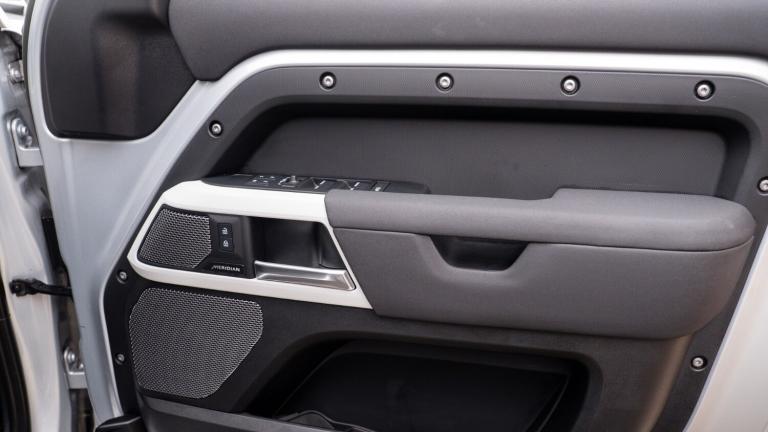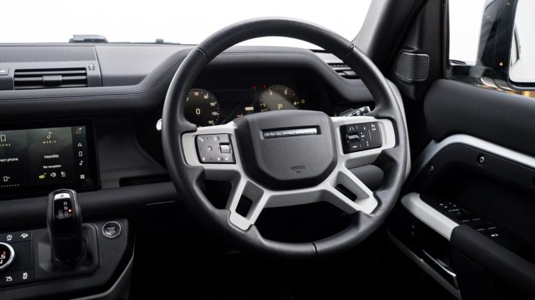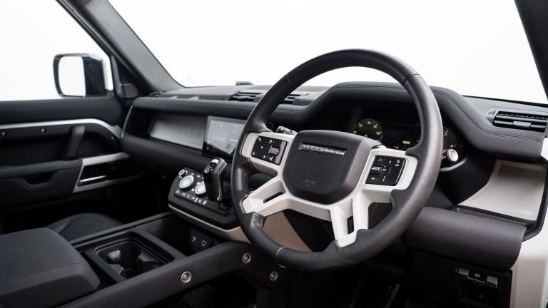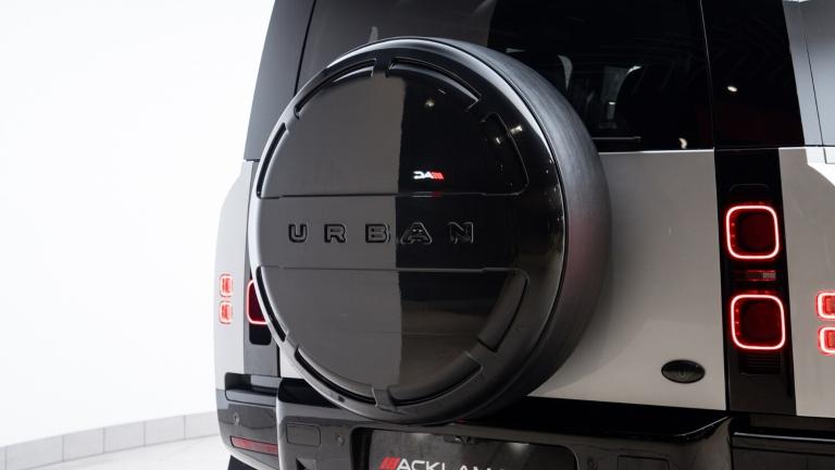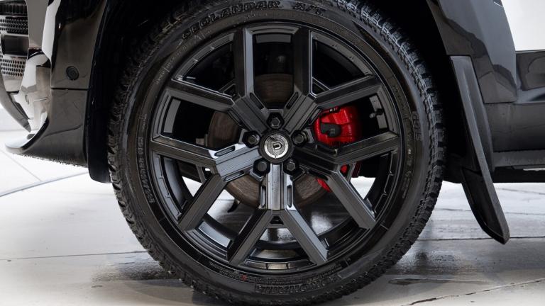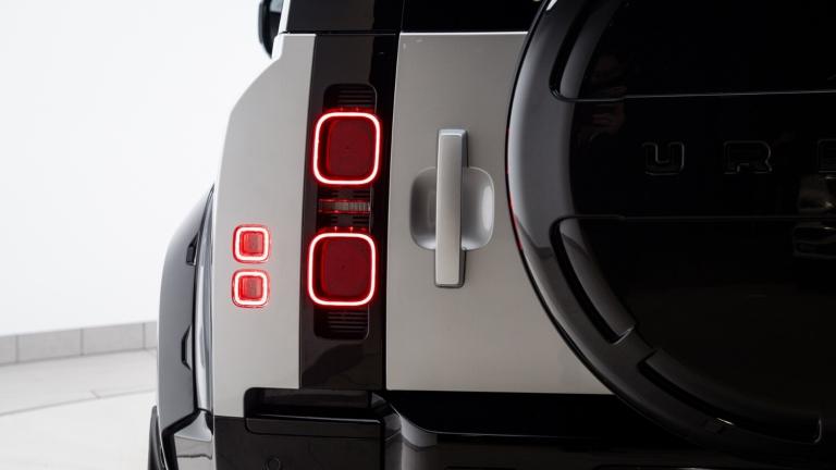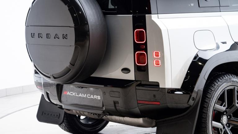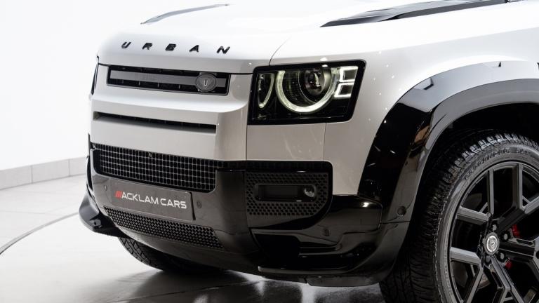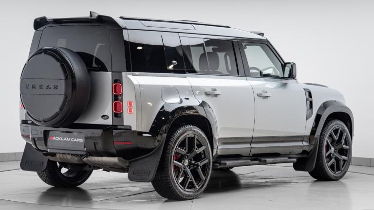 ..[Optional Extra] Hakuba Silver, [Optional Extra] Widetrack Arch Extensions, [Optional Extra] 22 Satin Black Alloys, [Optional Extra] Red Calipers, [Optional Extra] Roof Mounted LED POD Lights, [Optional Extra] Urban Badging, [Optional Extra] Widetrack Front Apron, [Optional Extra] Gloss Black Front Canards, [Optional Extra] Gloss Black Bumpers, [Optional Extra] Gloss Black Spoiler, [Optional Extra] Gloss Black Rear Wheel Cover, [Optional Extra] Front & Rear Mudflaps, [Optional Extra] Gloss Black Bonnet & Side Vents, [Optional Extra] Electric Deployable Towbar, [Optional Extra] Sliding Panoramic Sunroof, [Optional Extra] Contrast Black Roof, 360 degree parking aid,3D Surround Camera with 360 View, 180 Rear View, Front Traffic Detection, Forward Vehicle Guidance, Tow Hitch Assist and clear sight Ground View,Adaptive cruise control,Android Auto,Apple CarPlay,Blind spot assist,Bluetooth system,Brake pad wear indicator,Clear exit monitor,Connected navigation pro,Driver condition monitor,Electric power assisted steering (EPAS),Lane keep assist,Push button start,Rear traffic monitor,Traffic sign recognition with adaptive speed limiter,Trip computer,Wade Sensing,8 speed automatic transmission,All wheel drive system,Twin speed transfer box,DAB Radio (Digital Audio Broadcasting),Meridian 400w sound audio system with 11 speakers and subwoofer,Pivi pro connected,Automatic headlight levelling,Automatic headlights,Centre high mounted stop light,Electric heated/power fold door mirrors with approach lights and auto dimming driver side,Electric windows with one touch open/close and anti-trap,Follow me home lighting,Front fog lights,Heated rear window with timer,Heated windscreen,LED tail lights,Puddle lights,Rain sensing windscreen wipers,Rear fog lights,Rear side wing doors,Rear wiper,Side hinged tailgate,Standard tread plates,Trailer stability assist,12V power socket in loadspace,3 seat bench in 2nd row,Alpine lights,Durable rubber cabin flooring,Durable rubber loadspace flooring,Footwell lights,Front passenger isofix child seat attachment,Loadspace cover,Loadspace Hook,Multifunction steering wheel,Overhead stowage for sunglasses,Premium cabin lighting,Rear headrests,Rear ISOFIX,Rear reading lights,Single front passenger seat,Standard seat configuration,Storage glovebox,Sunvisors with illuminated vanity mirrors,Online pack with data plan - Defender,5 x 3 point seatbelts,ABS,Brake hold function,CBC - (Cornering brake control),Customer configurable autolock,DSC -