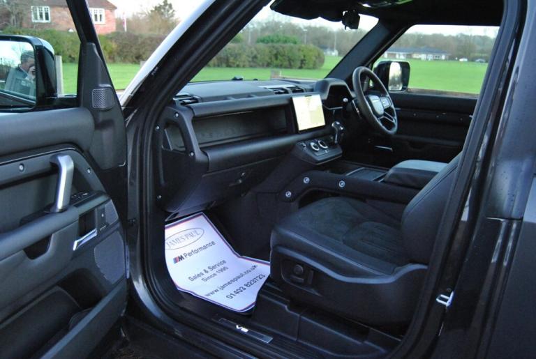 Stunning high spec 2022 Land Rover Defender 5.0 P525 V8 Carpathian Edition finished in Premium Carpathian Grey Paintwork with Gloss Black Top Surfaces and Black Leather Ventilated Seats Only 24.000 miles with Full Service History. 22-Inch Alloy Wheels in Black Heated Seats Cooled Seats / Ventilated ( Air Conditioned ) Premium 'Carpathian Grey' Electrically Deployable Tow Bar Twin Front Cupholders Cover Satin Paint Protection Film (PPF) Applied to Carpathian Grey Body Panels 3D Surround Camera Adaptive Cruise Control Apple CarPlay & Android Auto Blind Spot Assist Air Suspension Fridge in Centre Console Head-Up Display Meridian Surround Sound System Privacy Glass Sliding Panoramic Roof Three-Zone Climate Control Wade Sensing ULEZ COMPLIANT - NO CHARGE James Paul Car Sales is a family run business in a small village of Bucks Green conveniently situated on the Surrey and Sussex border. Established for over 35 years every car we offer is carefully hand selected and will come with a comprehensive provenance check. All of our vehicles are subject to a thorough pre delivery inspection through our workshops including a fresh MOT and service where required. Please ask us about our extremely competitive finance packages or Visit our website [Website URL removed] to create your own Finance Quote and Apply to help you fund your new car. Part exchanges welcome either way if you are looking to trade up or down.. 11.4in Touchscreen,12V Socket in Loadspace,14-Way Heated and Cooled Electric Memory Front Seats with 4-Way Manual Headrests,22in Alloy Wheels - Style 5098 - 5 Spoke - Gloss Black,22in Full Size Spare Wheel,360 Degree Parking Aid,3D Surround Camera,40-20-40 Fixed - Heated Rear Seats with Centre Armrest,ABS - Anti Lock Braking System,ACC - Adaptive Cruise Control,ATPC - All Terrain Progress Control,Activity Key,Adaptive Dynamics,Advanced Tow Assist,Air Quality Sensor,Airbags - Driver,Airbags - Front Passenger,All Season Tyres,Alpine Lights,Android Auto,Apple CarPlay,Assisted Tailgate with Soft Close,Automatic Headlight Levelling,Automatic Headlights and Rain Sensing Wipers,Black Contrast Roof,Black Contrast Tail Door,Black Exposed Rear Recovery Eyes,Blind Spot Assist,Brake Hold,Brake Pad Wear Indicator,Bright Metal Pedals,CBC - Cornering Brake Control,Cabin Air Ionisation with PM2.5 Filter,Carpathian Exterior Pack,Carpet Mats,Centre High Mounted Stop Light,Clear Exit Monitor,ClearSight Interior Rear View Mirror,Click and Go Integrated Base Unit,Configurable Terrain Response,Cross-Car Beam in Satin Black Powder Coat Brushed finish,Customer Configurable Autolock,DSC - Dynamic Stability Control,Darkened Tail Lights,Digital Audio Broadcast Radio - DAB,Domestic Plug Socket,Driver Condition Monitor,Durable Rubber Cabin Flooring,Durable Rubber Loadspace Flooring,EBA - Emergency Brake Assist,EBD - Electronic Brake-Force Distribution,EPAS - Electric Power Assisted Steering,ETC - Electronic Traction Control,Electric Cabin Pre-conditioning,Electric Parking Brake,Electric Windows with One-Touch Open-Close and Anti-Trap,Electrically Adjustable Steering Column,Electrically Deployable Towbar,Electronic Active Differential with Torque Vectoring by Braking,Electronic Air Suspension,Emergency Braking,Extended Leather Upgrade,Follow Me Home Lighting,Footwell Lights - Front,Front Airbags with Passenger Seat Occupant Detector,Front Centre Console Refrigerator Compartment,Front Fog Lights,Garage Door Opener - HomeLink,Gloss Black Bonnet,Glovebox Storage,HDC - Hill Descent Control,Head Up Display,Headlight Power Wash,Headlining - Ebony Morzine,Heated Electric Power Fold Door Mirrors with Approach Lights and Auto-dimming Driver Side,Heated Rear Window with Timer,Heated Steering Wheel,Heated Washer Jets,Heated Windscreen,Hill Launch Assist,Illuminated Metal Treadplates with V8 Branding,Interactive Driver Display,Intrusion Sensor,Keyless Entry,LESS Roof Rack or Rails,Lane Keep Assist,Leather Gearshift,Loadspace Cover,Loadspace Hooks,Locking Wheel Nuts,Low Traction Launch,Matrix LED Headlights with Signature DRL,Meridian Surround Sound System,Non Smokers Pack,Online Pack with Data Plan,Overhead Stowage for Sunglasses,Pivi Pro - Connected,Power Operated Child Locks,Premium Cabin Lighting,Privacy Glass,Puddle Lights,Push Button Start,Quad Outboard Mounted Exhaust Pipes,RSC - Roll Stability Control,Rear Collision Monitor,Rear Fog Lights,Rear ISOFIX,Rear Reading Lights,Rear Traffic Monitor,Rear Wash Wiper,Remote,Robustec Veneer,Satin Chrome Gearshift Paddles,Satin Protective Film,Seat Belt Reminder,Seats - Rear Centre Head Restraint,Secure Tracker Pro (12 Month Subscription From New),Side-Hinged Tailgate,Sliding Panoramic Roof,Solar Attenuating Windscreen,Suedecloth Steering Wheel,Sun Visors - Illuminated Vanity Mirrors,TPMS - Tyre Pressure Monitoring System,TSA - Trailer Stability Assist,Terrain Response 2 with Dynamic Program,Three-Zone Climate Control,Traffic Sign Recognition and Adaptive Speed Limiter,Trip Computer,Twin Front Cupholders