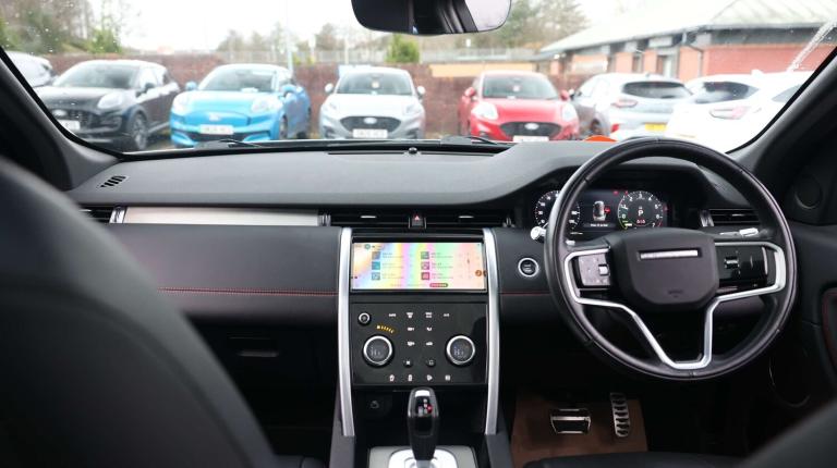 .The Land Rover Discovery Sport 1.5 P300e R-Dynamic SE 5dr Auto [5 Seat] blends Land Rovers legendary off-road capability with modern plug-in hybrid efficiency. Its 1.5-litre PHEV engine delivers responsive performance while enabling electric-only driving for eco-friendly city journeys. Inside, the cabin is loaded with tech and comfort: a 10'' Pivi Pro touchscreen, Android Auto, Apple CarPlay, and connected navigation keep you in control, while adaptive cruise control, lane keep assist, blind spot monitoring, rear traffic monitor, and clear exit monitor provide advanced safety and peace of mind. Comfort and convenience are key with a powered tailgate, panoramic sunroof, heated windscreen and rear window, dual-zone climate control, and premium interior finishes. Rear passengers enjoy privacy glass, ISOFIX child seat mounts, and ample space for five occupants. The Discovery Sport also excels off-road with Terrain Response 2, All-Terrain Progress Control, coil suspension, hill start/descent assist, and Wade Sensing, making it ready for every adventure, from city streets to rugged terrain. With cutting-edge technology, hybrid efficiency, and genuine Land Rover capability, the R-Dynamic SE is an SUV that truly does it all..10'' touch screen, Adaptive cruise control, Android Auto, Apple CarPlay, Blind spot assist, Clear exit monitor, Driver condition monitor, eCall emergency call system, Front and rear parking aid, InControl remote premium, Lane keep assist, Locking fuel flap, PAS, Pivi Pro connected navigation system with upgraded Infotainment, Powered tailgate/boot lid, Push button start, Rear collision monitor, Rear traffic monitor, Service interval indicator, Traffic sign recognition with adaptive speed limiter, Trip computer, Wade Sensing, 7 kW onboard charger, All terrain progress control, Coil suspension system, Dynamic stability control, Home charging cable, Public charging cable, Terrain Response 2, Bluetooth connectivity including audio streaming, Digital Audio Broadcast radio-DAB, Steering wheel mounted audio controls, 3rd brake light, Automatic headlight levelling, Automatic headlights, Electric front/rear windows, Electric heated/power fold door mirrors with approach lights and auto dimming driver side, Fixed panoramic sunroof with powered sunblind, Front and rear recovery eyes, Heated rear window, Heated windscreen including heated washer jets, Privacy glass, R Dynamic badge, Rain sensing windscreen wipers, Rear fog lights, Rear side wing doors,