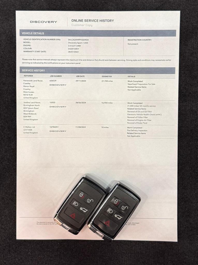 **12 MONTHS LAND ROVER APPROVED WARRANTY LAND ROVER SERVICE HISTORY** FIXED PANORAMIC SUNROOF WITH POWERBLIND, REAR VIEW CAMERA, APPLE CAR PLAY, ANDROID AUTO, DAB RADIO, SATELLITE NAVIGATION, PRIVACY GLASS,HEATED FRONT WINDSCREEN AND STEERING WHEEL FOR THOSE FROSTY MORNINGS, ELECTRIC HEATED FRONT SEATS WITH DRIVER MEMORY, KEYLESS ENTRY WITH PUSH BUTTON START AND STOP, MERIDIAN SURROUND SOUND SYSTEM, LANE KEEP ASSIST WITH UPCOMING TRAFFIC DETECTION, POWERED TAILGATE, REVERSE TRAFFIC DETECTION WITH AUTOBRAKE, ADAPTIVE SPEED LIMITER, TYRE PRESSURE MONITORING SYSTEM, VOICE ACTIVATED CONTROLS, EIGER GREY EXTERIOR WITH WINDSOR LEATHER INTERIOR , 20'' GLOSS DARK ALLOYS, 4WD - ALL WHEEL DRIVE, AUTO HIGH BEAM ASSIST, AUTOMATIC HEADLAMP LEVELLING, BLIND SPOT ASSIST, BODY COLOURED ROOF, CABIN LIGHTING, DAYTIME RUNNING LAMPS, CARPET FLOOR MATS, METAL FINISH FOOT PEDALS, FRONT AND REAR PARK AID+, FRONT FOG LAMPS, BLACK GRILLE, PREMIUM LED HEADLAMPS, MORZINE HEADLINING, INTERIOR REAR VIEW MIRROR WITH AUTO DIMMING, SECURE TRACKER PRO - SUBSCRIPTION REQUIRED. HARWOODS LANDROVER CRAWLEY are delighted to offer this Land Rover Discovery Sport 2.0 D200 MHEV R-Dynamic HSE SUV 5dr Diesel Auto 4WD Euro 6 (s/s) (204 ps). Be assured all approved Land Rovers are offered with a minimum 12 months Land Rover approved warranty and European roadside assistance. Our Land Rover Technicians carry out a 165-point check on every vehicle, as well as independent mileage and history checks. (As a Land Rover approved centre we can service Urban or Overfinch converted vehicles too) If this isn't the right car for you our Group stock has specification to include Sunroof, Leather, Heated Seats, Apple Car Play, Heated Steering Wheel, Reverse Camera, Rear Entertainment, Deployable Towbar, 360-degree camera, Meridian Audio, Panoramic Sun Roof, Tow Bar, Black Pack, Air Suspension, Adaptive Cruise,