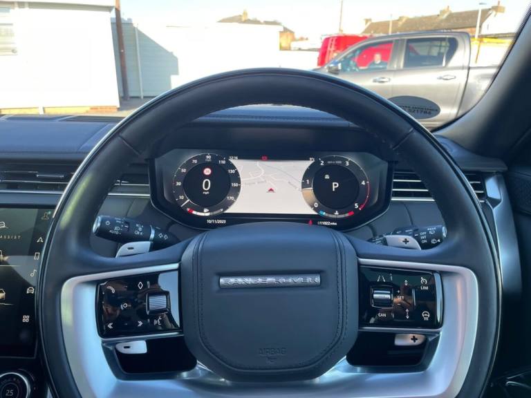 Features SAT-NAV, Television, Heated and Ventilated Seats, Reverse Camera, Dual Air Conditioning, Full Brown Leather Interior, Cruise Control, DAB Radio, and Rear Entertainment System. Also Equipped with Sunroof, Auto-Wipers, Auto-Lights, Harman/Kardon Sound System, Heated Multifunction Wheel, Car Info System, USB/iPod Connection, CD Player, Quickclear Windscreen, Split Tailgate, Multi-Terrain Response, 4x4i, ISOFIX Seats, and Remote Central Locking. Finished in Metallic Black and Fitted with 20 Inch Manufacturer Alloy Wheels, Complete with Rear Privacy Glass and Sidesteps. With Full Service History, Including Multiple Land Rover Main Dealer Services. Comes with 2 Keys and HPI Clear. Part Exchange Welcome. 0% Deposit Finance Available. We offer a huge range of quality used Cars & Commercials. Combined with our many years of experience, we are sure we can make the perfect deal for you. Our family run ethos means we can offer you honest part exchange prices, a superb customer experience, and an offering of quality affordable vehicles to meet any budget. Combine this with our fantastic relationships with multiple finance providers, we can also offer the perfect finance package for you and your new vehicle. All our vehicles are prepared and ready to drive away. If you would like any further images or a personalised walk around video then give us a call and we will be happy to provide it. .12V power sockets, 13.1" Touchscreen, 3 seat bench in 2nd row, 3D surround camera inc frwd traffic detection,vehicle clearance guidance,3D view,clearsight ground view,manoevure light,360 parking aid,wade sensing, 3x3 point rear seat belts, 8 speed automatic transmission, Acoustic laminated windscreen, Active damper technology system, Adaptive cruise control with steering assist, Adaptive dynamics, Air quality sensor, All Terrain Info Centre, All terrain progress control, All Wheel Drive (AWD), All wheel steering, Android Auto, Animated directional indicators, Anti-lock braking system (ABS), Apple car play, Auto folding loadspace cover, Automatic access height, Automatic headlights, Automatic levelling headlights, Black brake calipers, Blind spot assist, Bluetooth connectivity streaming, Brake hold function, Bright metal pedals, Cabin air purification pro, Cabin lighting, Centre high mounted stop light, ClearSight interior rear view mirror, Configurable programs, Cornering brake control (CBC), Customer configurable autolock, Customer configurable single point entry, Digital Audio Broadcast radio-DAB, Driver and passenger front seat armrests, Driver condition response, DSC - Dynamic Stability Control, Easy boot loading, Ebony Carpet, Eco mode, Electric power assisted steering (EPAS), Electric rear side window sunblinds, Electric windows with one touch open/close and anti trap, Electrical towing preparation, Electronic active differential with torque vectoring by braking, Electronic air suspension with dynamic response, Electronic brake force distribution, Electronic parking brake, Electronic traction control, Emergency brake assist, Emergency braking, Emergency call service, Flush deployable exterior door handles, Four zone climate control, Front airbags with passenger seat occupant detector, Front and rear cupholders, Front and rear grab handles, Front and rear parking aid, Front and rear recovery eyes, Front fog lights, Front head restraints, Front side airbags, Gearshift paddles, Head up Display, Headlamp power wash, Heated rear window, Heated steering wheel, Heated washer jets, Hill descent control, Hill launch assist, Hook in load space, Illuminated metal tread plates with Autobiography script, Illuminated seat belt buckles, Immobiliser, Interactive driver display, Intrusion sensor and alarm, Keyless entry, Laminated front and rear side glass, Lane keep assist, LED tail lights, Loadspace light, Locking wheel nuts, Low traction launch, Luggage tie d