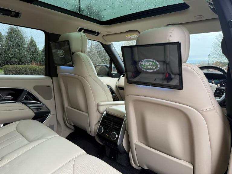 MORE PICTURES ON OUR WEBSITE LISTING. A HUGE SPEC EXAMPLE, STUNNING CAR, JUST BEEN SERVICED. BRAND NEW 24' ASANTI ALLOYS WITH YOKOHAMA TYRES, WITH THE OPTION FOR 23' DIAMOND CUT LAND ROVER ALLOYS. ENTERTAINMENT SCREENS IN REAR, HEATED AND ELECTRIC FRONT AND REAR SEATS, SOFT CLOSE DOORS, HEADS UP DISPLAY, 4 WHEEL STEERING, 360 CAMERAS, UNDERNEATH CAMERA VIEW, SAT-NAV, DIGITAL DASH, ONE-TOUCH BUTTON REAR SUSPENSION LOWERING IN BOOT, ELECTRONICALLY OPERATED BOOT OFF KEY AND BUTTON IN CABIN, HEATED STEERING WHEEL, FULL SLIDING PANORAMIC ROOF, MERIDIAN SOUND SYSTEM, HEATED WINSCREEN, REAR LIP SPOILER, WIRELESS APPLE CAR PLAY/ANDROID AUTO, AND MORE... 11in Touchscreen, 20-Way Heated Electric Front Seats with Power Recline Heated Rear Seats, 3D Surround Camera, ATPC - All Terrain Progress Control, Active Damper Technology System, Adaptive Cruise Control with Steering Assist, Air Quality Sensor, Aluminium Treadplates with Range Rover Lettering, Android Auto, Animated Directional Indicators, Apple CarPlay, Auto-Dimming Interior Rear View Mirror, Auto-Dimming Power Fold - Heated Door Mirrors with Memory and Approach Lights, Automatic Access Height, Automatic Headlights, Blind Spot Assist, Bluetooth Telephone Connectivity with Streamed Audio, Bright Metal Pedals, CBC - Cornering Brake Control, Cabin Lighting, Configurable Single Point Entry, DAB - Digital Audio Broadcast, DSC - Dynamic Stability Control, Driver Condition Response, EBD - Electronic Brake-Force Distribution, EPB - Electronic Park Brake, Easy Boot Loading, Electrical Towing Preparation, Electronic Air Suspension, Emergency Braking, Extended Leather Upgrade, Fixed Panoramic Roof, Flush Deployable Door Handles, Front Fog Lights, Front and Rear Parking Aid, Front and Rear Recovery Eyes, Headlight Power Wash, Headlining - Duo Tone Ebony-Perlino, Interactive Driver Display, Keyless Entry, Lane Keep Assist, Less Tow Hitch Receiver, Loadspace Light, Low Traction Launch, Meridian Sound System, Nickel Atlas Exterior Pack, No Rear Seat Entertainment, Noble Chrome Controls, Non Smokers Pack, Occupant Protection Assist, Online Pack with Data Plan, Pivi Pro - Connected, Pixel LED Headlights with Signature DRL, Powered Gesture Tailgate - Boot Lid, Push Button Start, RSC - Roll Stability Control, Rear Centre Armrest, Rear Collision Monitor, Rear Fog Lights, Rear Traffic Monitor, Rear Wash Wiper, Remote, Roof - Body Coloured, Secure Tracker Pro (12 Month Subscription From New), Soft Door Close, TPMS - Tyre Pressure Monitoring System, TSA - Trailer Stability Assist, Terrain Response 2, Three Zone Climate Control, Traffic Sign Recognition and Adaptive Speed Limiter, Twin Blade Sunvisor with Illuminated Vanity Mirrors, USB Sockets, Winter Wiper Park Position, Wireless Device Charging with Phone Signal Booster. A FAMILY-RUN BUSINESS OPERATING IN THE MOTOR TRADE. WITH OVER 40 YEARS OF COMBINED EXPERTISE, AND SUPERB AFTER-SALES SERVICE. ALL OF OUR VEHICLES ARE PREPARED WITH A FULL VALET, AND EACH GOING THROUGH A MULTIPOINT INSPECTION. IF YOU REQUIRE ANY FURTHER INFORMATION ON ANY OF OUR VEHICLES, OR JUST HAVE A QUICK QUESTION, PLEASE GIVE OUR TEAM A CALL ON THE NUMBER PROVIDED. PART EXCHANGE WELCOME. HPI CLEAR.