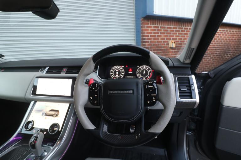 2022 (22) Land Rover Range Rover Sport 5.0 P575 V8 SVR Auto 4WD Euro 6 (s/s) 5dr, 25000 MILES, EXTREMELY HIGH SPEC AND GOOD EXAMPLE, FULL MAIN DEALER LANDROVER SERVICE HISTORY, ONE OF THE LAST 30 PRODUCED IN THIS YEAR, FINISHED IN EIGER GREY, SOFT CLOSE DOORS, 2 FORMER KEEPERS, CARBON EXTERIOR PACKAGE, CARBON INTERIOR PACK, HEATED SEATS, PANORAMIC GLASS SUNROOF, HEATED & COOLED SEATS. MERIDIAN SOUND SYSTEM, HEATED STEERING WHEEL, ADAPTIVE SUSPENSION, ELECTRIC SEATS WITH MEMORY PACKAGE, REVERSE CAMERA, APPLE CARPLAY, AMBIENT LIGHTING, This 2022 Land Rover Range Rover Sport P575 V8 SVR boasts exceptionally low mileage for its year, having covered just 24,700 miles. This premium SUV features a powerful 5.0L petrol engine and a Four Wheel Drive drivetrain, adhering to Euro 6 emission standards. Its SVR trim level ensures a high specification, including a heated steering wheel for added comfort, advanced Pixel LED headlights with signature daytime running lights, and automatic headlights for convenience. The Range Rover Sport SVR offers impressive performance, accelerating from 0 to 60mph in a remarkable 4.3 seconds, a testament to its potent V8 engine. This acceleration capability sets it apart from many other vehicles in its class. Furthermore, it provides a substantial boot space, making it highly practical for various needs, and is capable of towing up to 3000 kg, 360 Degree Parking Aid, 60-40 Folding Rear Seats, ABS - Anti Lock Braking System, ATPC - All Terrain Progress Control, Active Exhaust Control, Adaptive Cruise Control with Stop and Go, Adaptive Dynamics, All Terrain lnfo Centre, Aluminium Bonnet, Aluminium Gearshift Paddles, Android Auto, Apple CarPlay,, Auto-Dimming Power Fold - Heated Door Mirrors with Memory and Approach Lights, Automatic Headlights, Blind Spot Monitor, Bluetooth Connectivity, Body Coloured Side Sills and Bumper Corners, Brake Pre-fill, Bright Metal Pedals, CBC - Cornering Brake Control, Centre Console with Armrest, Clear Exit Monitor, Configurable PLEASE CALL TO ARRANGE A VIEWING
