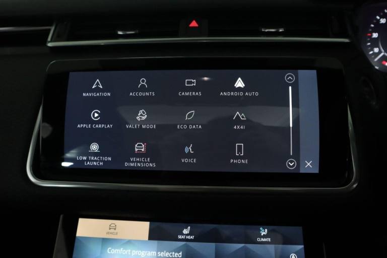 This 2022 Land Rover Range Rover Velar D200 Edition offers a sophisticated driving experience with its Euro 6 compliant 2.0L diesel engine and Four Wheel Drive system. As an Edition trim model, it comes equipped with notable features designed for convenience and safety, including a 3D Surround Camera for comprehensive parking assistance, Bluetooth connectivity for seamless device integration, and Blind Spot Assist to enhance awareness on the road. The Matrix LED Headlights with Signature Daytime Running Lights ensure excellent visibility, while Keyless Entry provides effortless access to the vehicle. The Range Rover Velar D200 Edition demonstrates its capability with a towing weight of 2400 kg and impressive acceleration, reaching 0-60mph in just 7.7 seconds. Its fuel economy is a highlight, achieving up to 43 mpg, which indicates it is more economical than many similar vehicles. Furthermore, the generous boot space offers practicality for all your needs, making this Velar a well rounded choice for those seeking style, performance, and utility..14-Way Powered Seats with Driver Memory and Heated Front, 40-20-40 Split Fold Rear Seat, ABS - Anti Lock Braking System, Acoustic Laminated Windscreen, Airbags - Curtain, Airbags - Driver, Airbags - Front Passenger, Airbags - Front Side, All Season Tyres, Android Auto, Apple CarPlay, Auto-Dimming Interior Rear View Mirror, Automatic Headlights, Black Roof Rails, Blind Spot Assist, Bluetooth Connectivity, Brake Pad Wear Indicator, Bright Metal Pedals, Cabin Lighting, Carpet Mats, Coil Suspension, DAB - Digital Audio Broadcast, DSC - Dynamic Stability Control, Driver Condition Monitor, EBA - Emergency Brake Assist, EBD - Electronic Brake-Force Distribution, EPAS - Electronic Power Assisted Steering, EPB - Electronic Park Brake, ETC - Electronic Traction Control, Electric Windows with One-Touch Open-Close and Anti-Trap, Emergency Braking, Flush Deployable Door Handles, Front Fog Lights, Front and Rear Parking Aid, Glovebox - Lockable, HDC - Hill Descent Control, Headlining - Ebony Morzine, Heated Electric Power Fold Door Mirrors with Approach Lights and Auto-dimming Driver Side, Heated Rear Window with Timer, Heated Steering Wheel, Heated Windscreen, Hill Launch Assist, Intrusion Sensor, Keyless Entry, Lane Keep Assist, Low Traction Launch, Manually Adjustable Steering Column, Matrix LED Headlights with Signature DRL, Meridian 3D Surround Sound System 750W, Metal Front Treadplates with R-Dynamic Branding, Metal Loadspace Scuff Plate, Narvik Black Contrast Roof, Online Pack with Data Plan, Open Differential with Torque Vectoring by Braking, Passive Front Headrests, Passive Suspension, Pivi Pro - Connected, Power Operated Child Locks, Power Socket Pack 1, Privacy Glass, R-Dynamic Black Exterior Pack, RSC - Roll Stability Control, Rain Sensing Windscreen Wipers, Rear Centre Headrest, Rear Fog Lights, Rear ISOFIX, Rear Traffic Monitor, Remote, Satin Chrome Gearshift Paddles, Seat Belt Reminder, Secure Tracker (12 Month Subscription From New), Shadow Aluminium Trim Finisher, Sliding Panoramic Roof, Standard IP End Caps, Standard Interior, TPMS - Tyre Pressure Monitoring System, TSA - Trailer Stability Assist, Tailgate - Boot Lid Spoiler, Terrain Response with Dynamic Program, Traffic Sign Recognition and Adaptive Speed Limiter, Two-Zone Climate Control, Velar and R-Dynamic Badge, 20in Alloy Wheels - 7 Spoke - Style 7014 with Gloss Black Finish, 3D Surround Camera, Automatic Headlight Levelling, CBC - Cornering Brake Control, Cruise Control and Speed Limiter, Follo