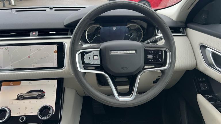 Superb and sporty looking Velar offered in a desiarble colour combination. *9.9 Representative APR available. Finished in Eiger Grey with Interior Light Oyster, this Range Rover Velar 2.0 D200 R-Dynamic SE blends sleek design and refined luxury with advanced tech in every detail. Inside, you'll enjoy heated front leather seats, ambient interior lighting, and a premium cabin feel. The infotainment suite features a high-resolution touchscreen, wireless Apple CarPlay + Android Auto, Heated steering wheel and a full digital driver display. On the exterior, Black roof rails, LED signature headlights, and 20 inch 10 spoke Style 1032 Satin Dark Grey finish Alloy Wheels enhance both presence and sophistication. Safety and convenience are well covered with front + rear parking sensors, a rear view camera, adaptive cruise control, blind-spot monitoring and keyless entry/start all included. This Velar delivers a striking mix of luxury, technology and everyday usability. Call now for the full details and to check availability. *9.9 Representative APR available.
