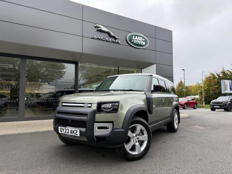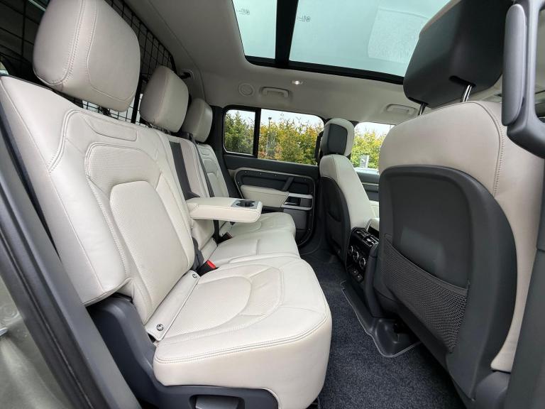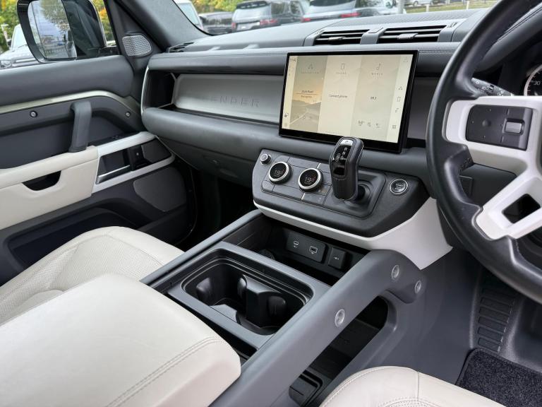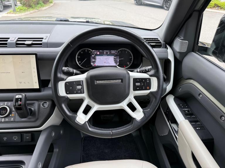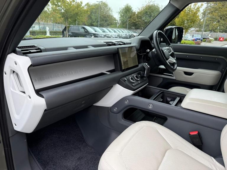 **12 MONTHS LAND ROVER APPROVED WARRANTY AND FULL LAND ROVER SERVICE HISTORY**, PANORAMIC SUN ROOF, 8 SEATS, DETACHABLE TOW BAR, PRIVACY GLASS, WIRELESS PHONE CHARGER, CENTRE CONSOLE FRIDGE, ISOFIX, HEATED STEERING WHEEL, ADAPTIVE CRUISE CONTROL, AIR SUSPENSION, 360 SURROUND CAMERA, SAT NAV, DAB, HEATED AND COOLED FRONT SEATS, MERIDIAN SOUND SYSTEM, 20'' ALLOY WHEELS, ELECTRIC FRONT MEMORY SEATS, BLIND SPOT ASSIST, LANE KEEP ASSIST, WHITE ROOF, APPLE CARPLAY, ANDROID AUTO - HARWOODS LANDROVER BASINGSTOKE are delighted to offer this Land Rover Defender 3.0 D300 MHEV HSE SUV 5dr Diesel Auto 4WD Euro 6 (s/s) (300 ps) - Be assured all approved Land Rovers are offered with a minimum 12 months Land Rover approved warranty and European roadside assistance. Our Land Rover Technicians carry out a 169-point check on every vehicle, as well as independent mileage and history checks. **(Due to us being a Landrover approved centre we are unable to offer Urban or Overfinch converted vehicles)**If this isn't the right car for you our Group stock has specification to include Sunroof, Leather, Heated Seats, Apple Car Play, Heated Steering Wheel, Reverse Camera, Rear Entertainment, Deployable Towbar, 360-degree camera, Meridian Audio, Panoramic Sun Roof, Tow Bar, Black Pack, Air Suspension, Adaptive Cruise, Apple Carplay, Hard Top, Utility, Autobiography, SVR, AWD, LWB. Other colour options including Black, Blue, Green, Silver, White, Red, Grey & SVO. Interior options of Ebony, Black, Ivory, White, Tan, Cream, Oyster, Caraway, Pimento, & Euro 6 ULEZ compliant drive trains. *