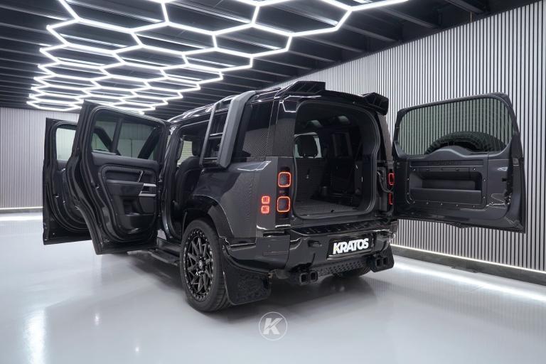 2023 Land Rover Defender 110 D300 HSE MHEV Kratos Automotive Mavros Edition FINANCE AVAILABLE, MANUFACTURER WARRANTY, 7 SEATER, D300 HSE MHEV, PANORAMIC ROOF, 360 CAMERA, KRATOS KIT WORTH £17,000, EXCLUSIVE FORGED WHEELS, ROOF LIGHT, SIDE BOX AND LADDER.Offered in stunning Carpathian Grey with an added ceramic protective finish, this 2023 Land Rover Defender 110 X-Dynamic D300 HSE MHEV is a top-spec HSE model enhanced by the Kratos Automotive Mavros Edition body kit a £17,000 upgrade that elevates this already iconic vehicle to an entirely new level of style and presence. Under the bonnet is Land Rovers refined and powerful 3.0L 6 cylinder Mild Hybrid diesel engine, producing 300hp and paired with an 8-speed automatic gearbox and adaptive air suspension for a smooth and capable drive both on and off-road.With just 2 registered owners, a full Land Rover service history, and the remainder of the manufacturers warranty with an option to extend, this Defender offers the rare combination of standout styling, premium features, and complete peace of mind.This vehicle can be sold with 12 months warranty and 12 months MOT if required.Key Highlights Kratos Automotive Mavros Edition Body Kit Worth £17,000 22inch Fully Forged Wheels.Front & Rear Spoilers Roof-Mounted LED Light Bar Bespoke Interior Detailing Gloss Black Styling Accents Enhanced Wheel Arches & Sills Mavros Edition Branding Discover the full Mavros Edition Kit here2023 Registration - Carpathian Grey Full Land Rover Service History Land Rover Manufacturers Warranty Remaining Only 2 Registered Owners from New 26,000 Miles Full Vehicle Specification Engine: 3.0L I6 Diesel Mild Hybrid 300hp Transmission: 8-Speed Automatic Drivetrain: All-Wheel Drive Exterior Colour: Carpathian Grey Interior: Ebony Windsor Leather Upholstery Infotainment: Pivi Pro System with 13.1 inch Touchscreen & Meridian Surround Sound Navigation: 3D Sat-Nav with Real-Time Traffic UpdatesSmartphone Integration: Wireless Apple CarPlay & Android AutoDriver Assistance:Adaptive Cruise Control Blind Spot AssistLane Keep Assist 360 Surround Camera Clear Sight Rear View Mirror Comfort Features:Heated & Cooled Electric Front Seats with MemoryDual-Zone Climate Control Panoramic Roof Armrest Fridge Exterior & Utility: Mavros Edition Body Kit worth £17,000.00 Matrix LED Headlights with DRLs Electronic Air Suspension with Terrain Response 2 Keyless Entry & StartPrivacy Glass Heated Windscreen A rare opportunity to acquire a truly unique and meticulously enhanced Defender 110 HSE Mavros Edition, combining factory luxury with bespoke styling from one of the most respected aftermarket designers in the UK.