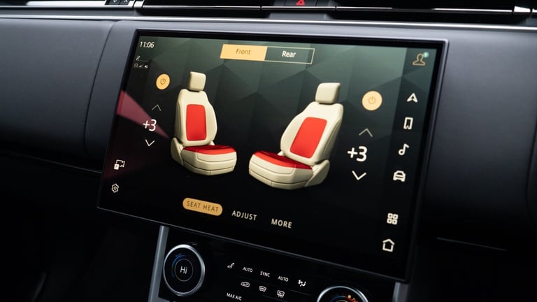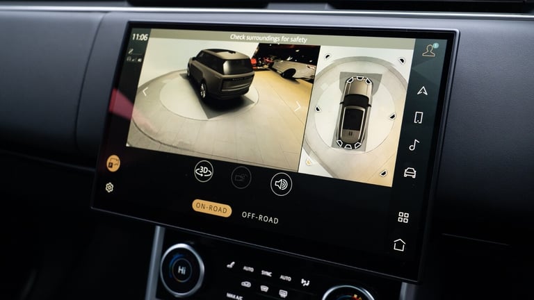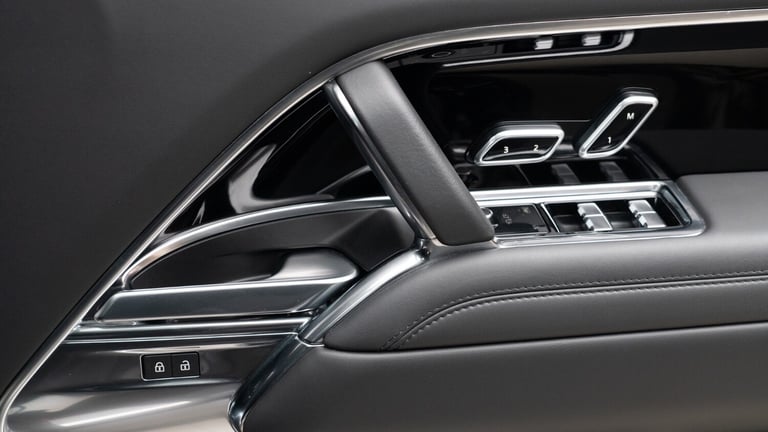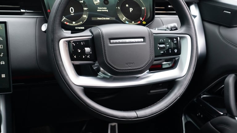 .[Optional Extra] Eiger Grey Metallic, [Optional Extra] 22 Diamond Turned Alloys, [Optional Extra] Bespoke Black Exterior Styling, [Optional Extra] Privacy Glass, [Optional Extra] Gloss Grand Black Veneer, 13.1'' Touchscreen,3D surround camera inc frwd traffic detection,vehicle clearance guidance,3D view,clearsight ground view,manoevure light,360 parking aid,wade sensing,Adaptive cruise control with steering assist,All Terrain Info Centre,All wheel steering,Android Auto,Apple car play,Blind spot assist,Bluetooth connectivity streaming,Driver condition response,Eco mode,Electric power assisted steering (EPAS),Emergency call service,Front and rear parking aid,Interactive driver display,Lane keep assist,Powered gesture tailgate/boot lid,Rear collision monitor,Rear traffic monitor,Remote,Traffic sign recognition with adaptive speed limiter,Wi-Fi Enabled with data plan,Wireless device charging with phone signal booster,8 speed automatic transmission,Active damper technology system,Adaptive dynamics,All terrain progress control,All Wheel Drive (AWD),Automatic access height,Terrain Response 2 Auto,Twin speed transfer box,Digital Audio Broadcast radio-DAB,Pivi pro including smart settings, Connected navigation pro, nuance speech,USB socket,Acoustic laminated windscreen,Animated directional indicators,Automatic headlights,Automatic levelling headlights,Centre high mounted stop light,Electric windows with one touch open/close and anti trap,Flush deployable exterior door handles,Front and rear recovery eyes,Front fog lights,Headlamp power wash,Heated rear window,Heated washer jets,LED tail lights,Power fold, auto-dimming, heated door mirrors with approach lights,Rain sensing windscreen wipers,Range rover badge,Rear boot,Rear fog lights,Rear side wing doors,Rear wash/wipe,Side repeater indicators in mirror,Trailer stability assist,Winter wiper park position,12V power sockets,3 seat bench in 2nd row,Air quality sensor,Bright metal pedals,Cabin lighting,Customer configurable single point entry,Driver and passenger front seat armrests,Easy boot loading,Ebony Carpet,Front and rear cupholders,Front and rear grab handles,Front head restraints,Gearshift paddles,Heated steering wheel,Hook in load space,Loadspace light,Luggage tie down in loadspace,Multifunction steering wheel,Rear centre armrest,Rear head restraints,Rear ISOFIX,Single front passenger seat,Twin blade sunvisors with Illuminated vanity mirrors,Upper and lower glovebox,Online pack with data plan - Range
