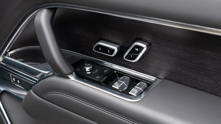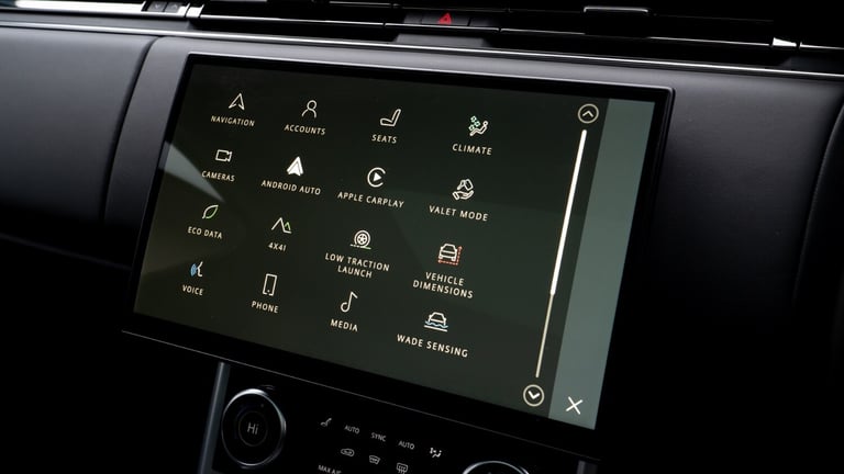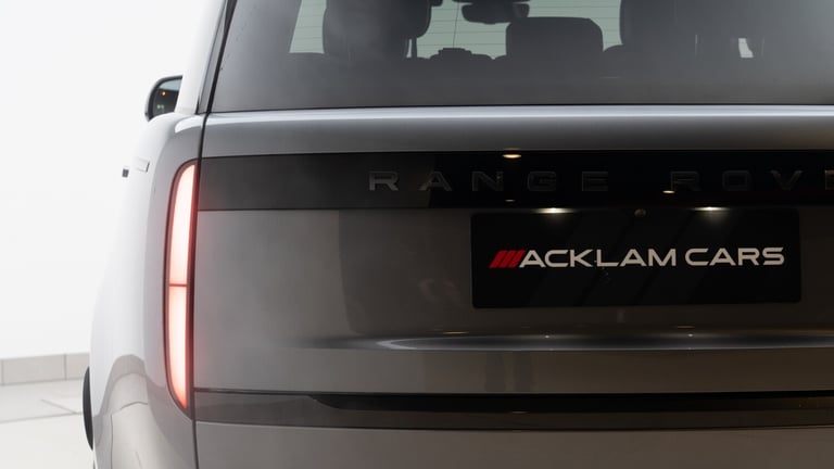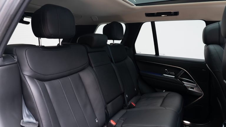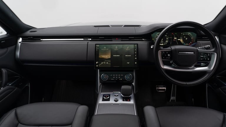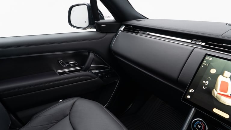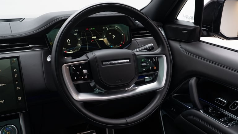 .[Optional Extra] Eiger Grey Metallic, [Optional Extra] Shadow Exterior Pack, [Optional Extra] 23'' SV Bespoke Style 1075 Silver/Gloss Dark Grey Alloys, [Optional Extra] Privacy Glass, [Optional Extra] Auto-Folding Loadspace Cover, [Optional Extra] SV Bespoke Carpet Mats [Optional Extra] Natural Black Birch Veneer, [Optional Extra] Dash Cam, [Optional Extra] Loadspace Rubber Mat, [Optional Extra] Rear Mudflaps, [Optional Extra] Rubber Mats, 13.1'' Touchscreen,3D surround camera inc frwd traffic detection,vehicle clearance guidance,3D view,clearsight ground view,manoevure light,360 parking aid,wade sensing,Adaptive cruise control with steering assist,All Terrain Info Centre,All wheel steering,Android Auto,Apple car play,Blind spot assist,Bluetooth connectivity streaming,Driver condition response,Eco mode,Electric power assisted steering (EPAS),Emergency call service,Front and rear parking aid,Interactive driver display,Lane keep assist,Occupant protection assist,Powered gesture tailgate/boot lid,Rear collision monitor,Rear traffic monitor,Remote,Traffic sign recognition with adaptive speed limiter,Wi-Fi Enabled with data plan,Wireless device charging with phone signal booster,8 speed automatic transmission,Active damper technology system,Adaptive dynamics,All terrain progress control,All Wheel Drive (AWD),Automatic access height,Terrain Response 2 Auto,Twin speed transfer box,Digital Audio Broadcast radio-DAB,Pivi pro including smart settings, Connected navigation pro, nuance speech,USB socket,Acoustic laminated windscreen,Animated directional indicators,Automatic headlights,Automatic levelling headlights,Centre high mounted stop light,Electric windows with one touch open/close and anti trap,Electrical towing preparation,Flush deployable exterior door handles,Front and rear recovery eyes,Front fog lights,Headlamp power wash,Heated rear window,Heated washer jets,LED tail lights,Power fold, auto-dimming, heated door mirrors with approach lights,Rain sensing windscreen wipers,Range rover badge,Rear boot,Rear fog lights,Rear side wing doors,Rear wash/wipe,Side repeater indicators in mirror,Trailer stability assist,Winter wiper park position,12V power sockets,3 seat bench in 2nd row,Air quality sensor,Bright metal pedals,Cabin lighting,Customer configurable single point entry,Driver and passenger front seat armrests,Easy boot loading,Ebony Carpet,Front and rear cupholders,Front and rear grab handles,Front head restraints,Gearshift paddles,Heated steering