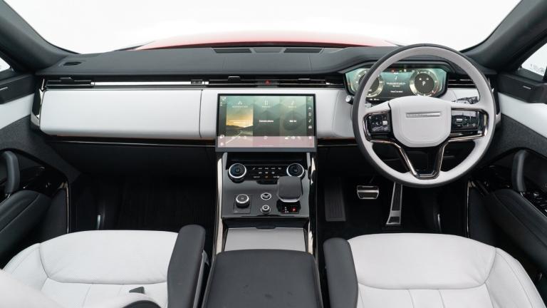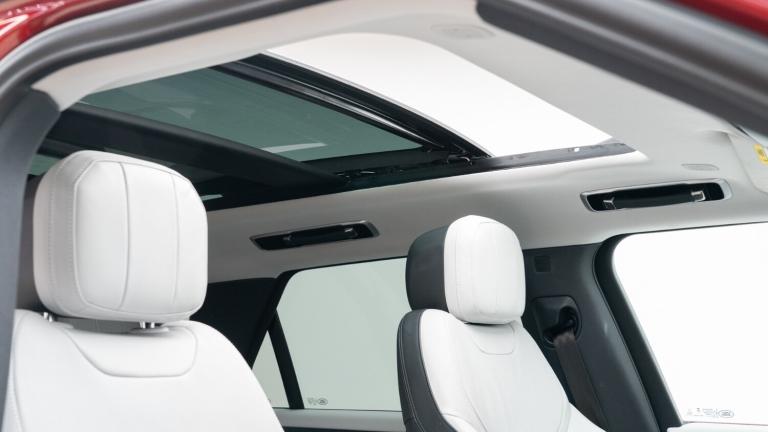 ..[Optional Extra] Firenze Red Metallic, [Optional Extra] Black Exterior Pack, [Optional Extra] 23 Gloss Black Alloys, [Optional Extra] Red Calipers, [Optional Extra] Contrast Black Roof, [Optional Extra] Privacy Glass, [Optional Extra] Fixed Side Steps, [Optional Extra] Sliding Panoramic Sunroof, [Optional Extra] Electric Deployable Towbar, 13.1'' Touchscreen,3D 360 degree surround camera with wade sensing,Adaptive cruise control with steering assist,Android Auto,Apple car play,Blind spot assist,Bluetooth connectivity streaming,Driver condition response,Eco mode,Electric power assisted steering (EPAS),Interactive Driver display instrument cluster,Lane departure warning system,Lane keep assist,Push button start,Rear collision monitor,Rear traffic monitor,Remote,Traffic sign recognition with adaptive speed limiter,Trip computer,Wireless device charging with phone signal booster,8 speed automatic transmission,Adaptive dynamics,All wheel drive system,Automatic access height,Terrain Response 2,DAB Radio (Digital Audio Broadcasting),Incontrol protect - SOS emergency call with automatic collision detection, optimised assistance call and Incontrol remote app essential,Pivi pro connected,USB/aux input socket,Adaptive brake lights,Automatic headlight levelling,Automatic headlights,Centre high mounted stop light,Electric heated/power fold memory door mirrors with approach lights and auto dimming driver side,Electric windows with one touch open/close and anti trap,Flush deployable exterior door handles,Follow me home lighting,Front and rear recovery eyes,Headlight power wash,Heated rear window,Heated washer jets,Heated windscreen,LED tail lights,No badges,Rain sensing windscreen wipers,Rear animated directional indicators,Rear fog lights,Rear side wing doors,Rear wash/wipe,Remote window closing,Side repeater indicators in mirror,Trailer stability assist,Winter wiper park position,3 seat bench in 2nd row,60:40 seats with power recline and loadthrough,Air quality sensor,Auto air recirculation,Bright metal foot pedals,Centre console with armrest,Customer configurable single point entry,Driver's footrest,Easy boot loading,Ebony console door armrests and seatbelts,Electric adjustable steering column,Front and rear cupholders,Front door storage space,Front head restraints,Front map lights,Front seat back map pockets,Front stowage pocket,Front/rear passenger grab handles,Gearshift paddles,Heated steering wheel,Isofix child seat preparation,Loadspace cover,Loadspace