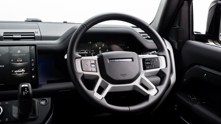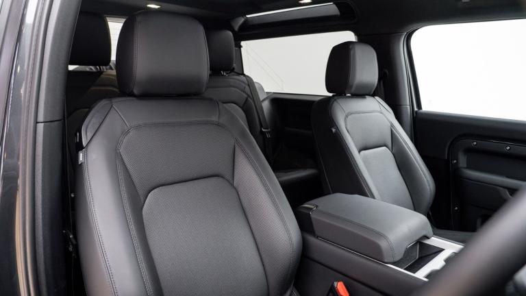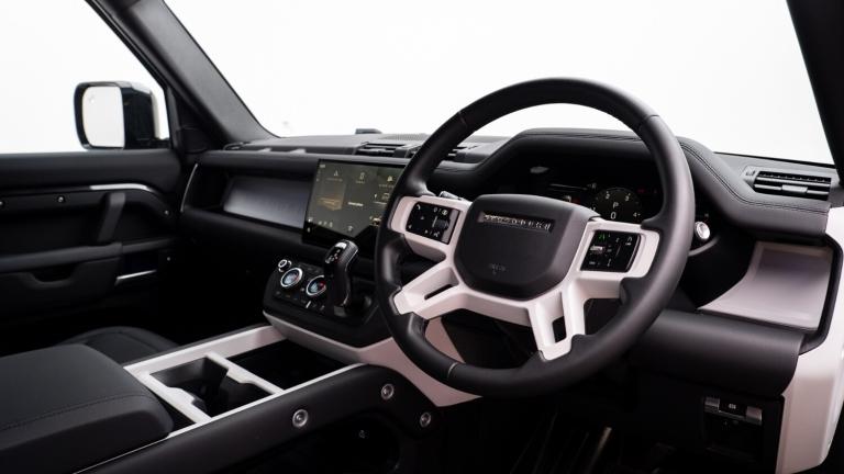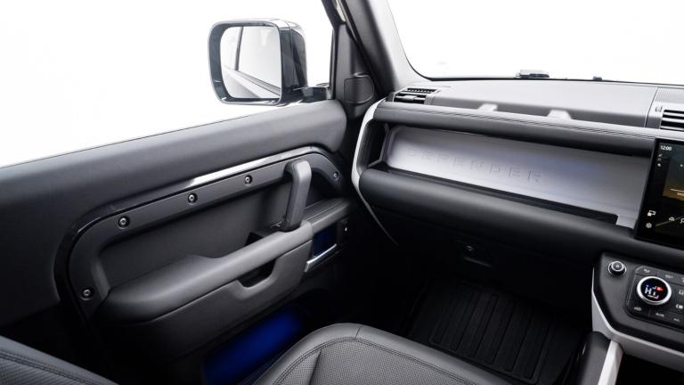..1 x USB-C (power only) & 1 x USB-C (power & data) in Row 1, 2 x USB-C in Row 2,11.4'' touchscreen,360 degree parking aid,3D Surround Camera with 360 View, 180 Rear View, Front Traffic Detection, Forward Vehicle Guidance, Tow Hitch Assist and clear sight Ground View,Adaptive cruise control,Android Auto,Apple CarPlay,Blind spot assist,Bluetooth system,Brake pad wear indicator,Clear exit monitor,Connected navigation pro,Driver condition monitor,Electric power assisted steering (EPAS),Interactive driver display,Lane keep assist,Push button start,Rear collision monitor,Rear traffic monitor,Traffic sign recognition with adaptive speed limiter,Trip computer,Wireless device charging,8 speed automatic transmission,All wheel drive system,Twin speed transfer box,DAB Radio (Digital Audio Broadcasting),Meridian 400w sound audio system with 11 speakers and subwoofer,Pivi pro connected,Automatic headlight levelling,Automatic headlights,Black exposed rear recovery eyes,Body coloured bonnet,Centre high mounted stop light,Electric heated/power fold door mirrors with approach lights and auto dimming driver side,Electric windows with one touch open/close and anti-trap,Follow me home lighting,Heated rear window with timer,Heated windscreen,Illuminated metal treadplates with brand name script,LED tail lights,Panoramic rear side glass,Privacy glass,Puddle lights,Rain sensing windscreen wipers,Rear fog lights,Rear wiper,Side hinged tailgate,Standard tail door,Trailer stability assist,X-Dynamic badge,12V power socket in loadspace,3 seat bench in 2nd row,Alpine lights,Configurable cabin lighting,Durable rubber cabin flooring,Durable rubber loadspace flooring,Flat load space floor tray,Footwell lights,Front head restraints,Loadspace cover,Loadspace Hook,Multifunction steering wheel,Overhead stowage for sunglasses,Rear headrests,Rear ISOFIX,Rear reading lights,Single front passenger seat,Standard seat configuration,Storage glovebox,Sunvisors with illuminated vanity mirrors,Twin front cupholders,Non-smoker package,Online pack with data plan - Defender,5 x 3 point seatbelts,ABS,Brake hold function,Cornering brake control (CBC),Customer configurable autolock,Driver and passenger airbags,DSC - Dynamic Stability Control,EBD - Electronic brakeforce distribution,Electric parking brake (EPB),Emergency brake assist,Emergency braking,ESP + traction control,Front airbags with passenger seat occupant detector,HDC - Hill descent control,Hill launch assist,Low traction launch,Remote for