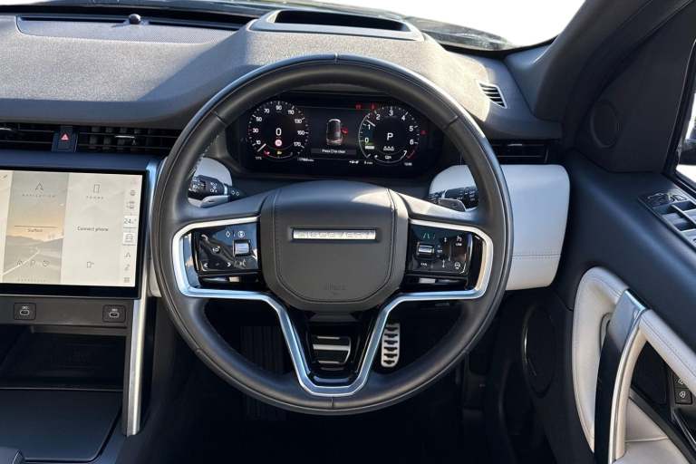 Finished in sleek Santorini Black, this Discovery Sport 1.5 P300e Dynamic HSE combines plug-in hybrid efficiency with Land Rover versatility, premium luxury, and advanced technology. Practicality is enhanced with a fixed panoramic roof, privacy glass, powered tailgate, home and public charging cables, and 20 Style 5076 Diamond Turned alloy wheels, giving it a commanding presence. The cabin is finished in Light Oyster/Ebony Windsor leather with Light Oyster stitching, complemented by Ebony Morzine headlining and Shadow Aluminium trim. Comfort is exceptional thanks to 14-way electric front seats with driver memory, heated and cooled front seats, heated steering wheel, heated windscreen, and manual slide and recline second-row seats. Two-zone climate control with second-row vents and the Meridian Sound System create a refined and enjoyable interior. Technology features include the Pivi Pro touchscreen, Apple CarPlay and Android Auto, Interactive Driver Display, Head-Up Display, and wireless device charging, keeping connectivity and convenience at your fingertips. Safety and assistance are comprehensive, with Matrix LED headlights with signature DRL, Blind Spot Assist, Rear Collision Monitor, Rear Traffic Monitor, Lane Keep Assist, and Traffic Sign Recognition with Adaptive Speed Limiter. Stafford Land Rover are part of the family owned Swansway Motor Group. For more information regarding our flexible finance options or a personalised video, send us an enquiry today. This car...
