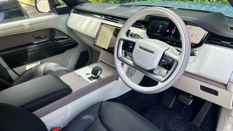 This is a rare opportunity to purchase our Ionian Silver Range Rover, presented here in stunning Autobiography trim, and equipped with the potent V8 engine. Our Range Rover Autobiography is finished in Ionian Silver matched with the Shadow Exterior Pack and 23 inch Style 1075 wheels in Gloss Black, over Ebony and Perlino split leather interior, and comes equipped with some fantastic features and optional extras, including, 24-way Heated and Cooled front seats with Massage and Memory functions, Heated and Cooled Power recline rear seats, Four-zone Climate Control, Meridian Signature Sound System, Privacy Glass, Sliding Panoramic Roof, Digital LED Headlights, Keyless Entry, Adaptive Cruise Control, Lane Keep Assist, Blind Spot Assist, Front and Rear Parking Aids, 3D Surround Camera, Head-up Display, ClearSight interior rear view mirror, Apple CarPlay and Android Auto, DAB Radio, Wireless Device Charging, Front centre console refrigerator compartment, Cabin Pre Conditioning, Secure Tracker Pro, Electrically Deployable Side Steps, and much more. Call today for more information. VAT Q. PRICE INCLUDES 10,421 GBP DEALER CONTRIBUTION WHEN FUNDED WITH JLR FS.