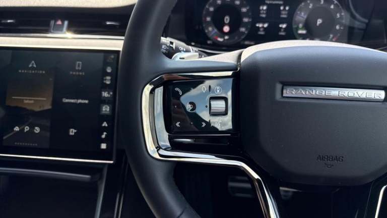 11.4'' touch screen, 11.4'' Touchscreen, 12 way driver memory and 10 way passenger electric front seats with 2 way manual headrest + 4 way lumbar support, 12-way driver memory and 10-way passenger electric front seats with 2-way manual headrests and rear centre armrest, 20'' gloss black alloy wheels - Style 1085, 20'' Style 1085 Gloss Dark Grey with Diamond Turned contrast, 3D 360 degree surround camera with wade sensing, Acoustic laminated windscreen, Adaptive Cruise Control, All season tyres, All terrain progress control, All-season tyres, Android Auto, Android Auto (subject to availability), Anti-lock braking system (ABS), Apple car play, Apple CarPlay (subject to availability), Auto high beam assist, Auto High Beam Assist (AHBA), Auto-dimming interior rear view mirror, Automatic Headlight Levelling, Blind Spot Assist, Bluetooth connectivity, Body-coloured roof, Brake pad wear indicator warning light, Bright metal pedals, Cabin lighting, Carpet mats, Chrome tread plates with range rover branding Includes stainless steel loadspace scuff plate with etched graphic, Chrome treadplates, Dark Anodised trim finisher, Digital Audio Broadcast (DAB) radio, Digital Audio Broadcast radio-DAB, Driver Condition Monitor, DSC - Dynamic Stability Control, Ebony interior with grained leather, eCall emergency system, Eco mode, Electric Rear Axle Drive, Electric windows with one touch open/close and anti trap, Electronic brake force distribution, Electronic parking brake, Electronic power assisted