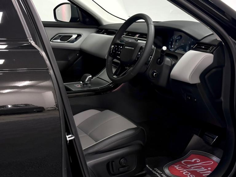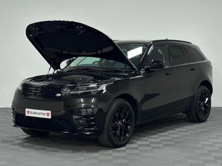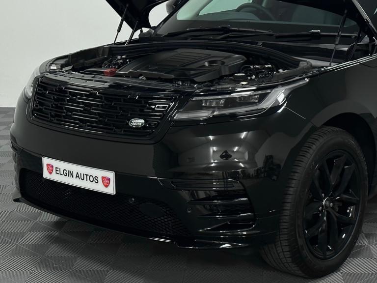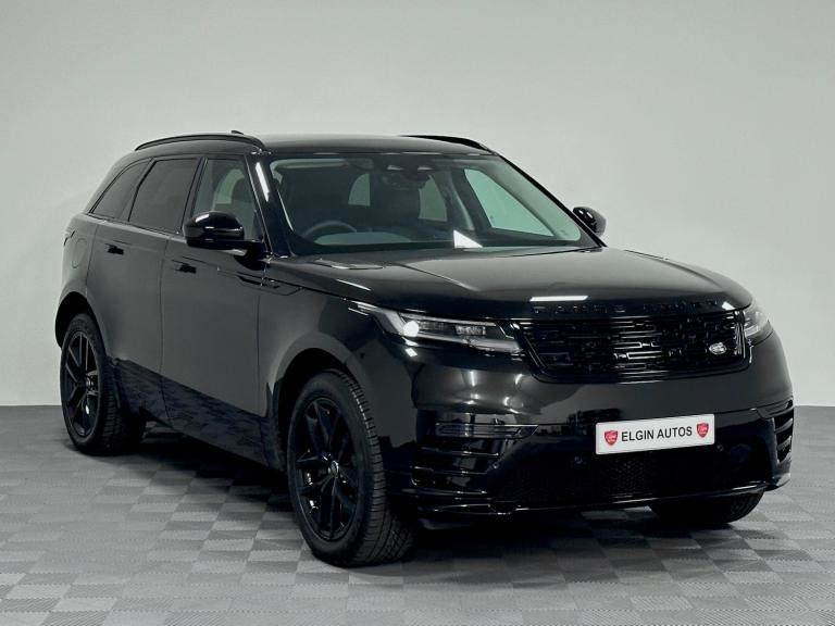 LAND ROVER RANGE ROVER VELAR P250 DYNAMIC SE FINISHED IN SANTORINI BLACK SUPPLIED TO ITS ONE LOCAL OWNER AND NOW ONLY 8,000 MILES SINCE NEW A MASSIVE £10,000 SAVING OFF LIST PRICE... ABSOLUTELY STUNNING EXAMPLE WITH BLACK EXTERIOR PACK... 20"" ALLOYS... PANORAMIC SUNROOF... TWO TONE LEATHER HEATED SEATS... HEATED STEERING WHEEL... MERIDIAN SOUND SYSTEM... KEYLESS ENTRY AND MORE... - 5 Door, 8 Speed Automatic, 250 bhp, Santorini Black - Metallic, 20"" 10 Spoke Gloss Black Alloy Wheels, Fixed Panoramic Glass Sunroof, Black Exterior Pack, Perforated Grained Leather Sports Seats - Ebony/Cloudy, Pivi Pro with Connected Navigation, Heated Steering Wheel, Heated Seats, LED Headlights with Signature DRL, 360 Surround Camera System, Meridian Surround Sound System, Grand Black Veneer, Front and Rear Parking Sensors, Cruise Control, Keyless Entry, Power Tailgate, 14 Way Electrically Adjustable Front Seats with Driver's Memory Function, Rear Window Privacy Glass, Apple CarPlay/Android, DAB/MP3/USB, Black Roof Rails, Rear Spoiler FOR MORE DETAILS AND YOUTUBE WALK ROUND VIDEO VISIT OUR WEBSITE ELGIN AUTOS, BALANCE OF MANUFACTURERS WARRANTY UNTIL SEPTEMBER 2027, YOUTUBE VIDEO, FINANCE AVAILABLE, PART EXCHANGE WELCOME, DELIVERY AVAILABLE