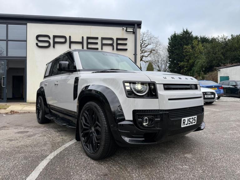 2026 model Full Urban wide track conversion in the all new Borasco Grey. Urban kit including the following - Urban wide arch extension pack, front splitter, bonnet & side vents, rear spoiler, rear wheel cover, 22'' alloy wheels & urban branding with badges. Side steps from factory. An incredibly low mileage example of just 850 miles, this 2025 Land Rover Defender 110 D350 X Dynamic HSE presents an exceptional opportunity. This four wheel drive model boasts a powerful 3.0 litre diesel engine, meeting Euro 6 emission standards. Its provenance is further enhanced by a full service history and a single owner from new, with an impressive 36 months of manufacturer warranty remaining. Notable features include a comprehensive Towing Pack with a towbar, perfect for those needing to haul up to 3500 kg.This Defender 110 X Dynamic HSE stands out with its advanced Matrix LED headlights featuring signature daytime running lights and a desirable sliding panoramic roof for an open and airy cabin experience. Adaptive Cruise Control makes longer journeys more relaxed, while Keyless Entry adds convenience. The vehicle's performance is equally impressive, achieving 0-60mph in a swift 6.1 seconds, demonstrating its dynamic capability. Furthermore, its large boot space offers practicality for all your needs, and its low insurance group rating indicates it is more economical to run than many similar vehicles.