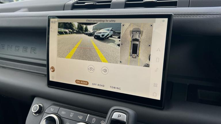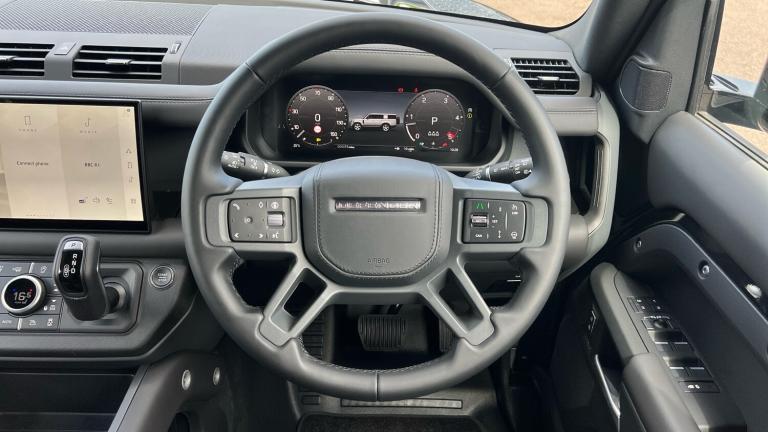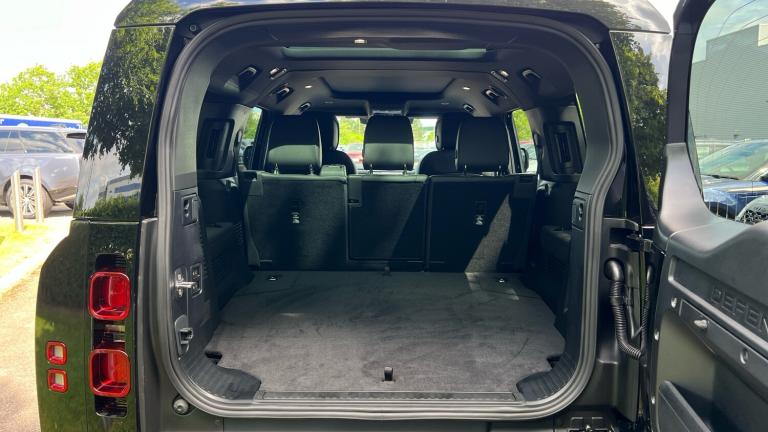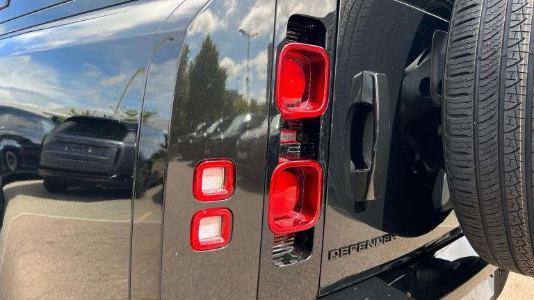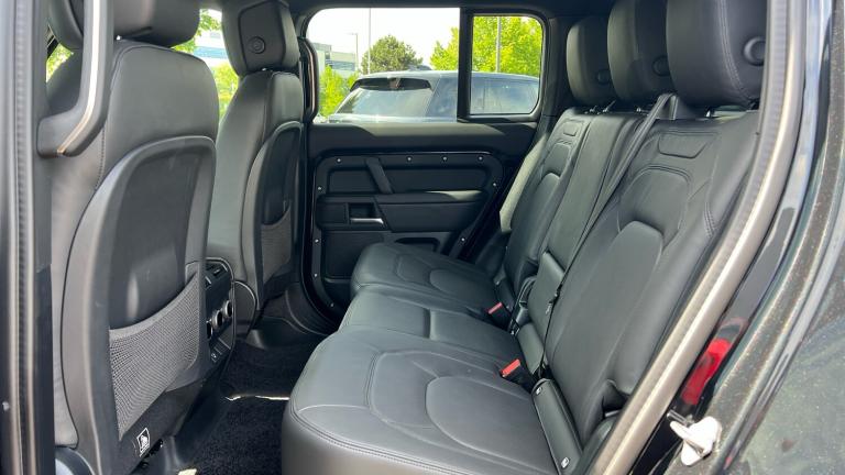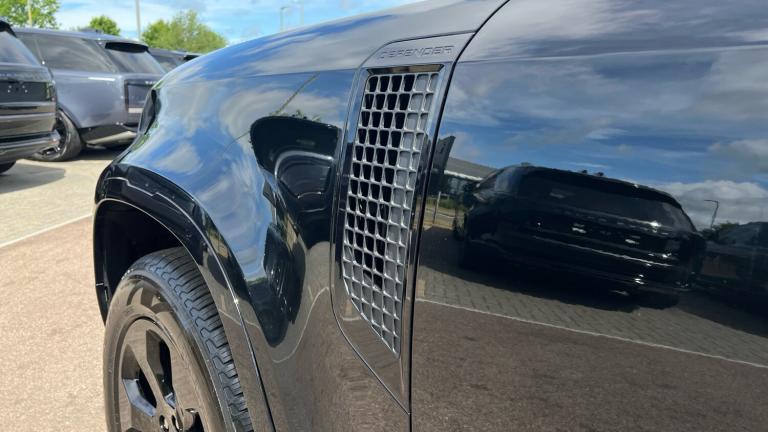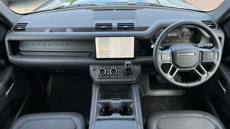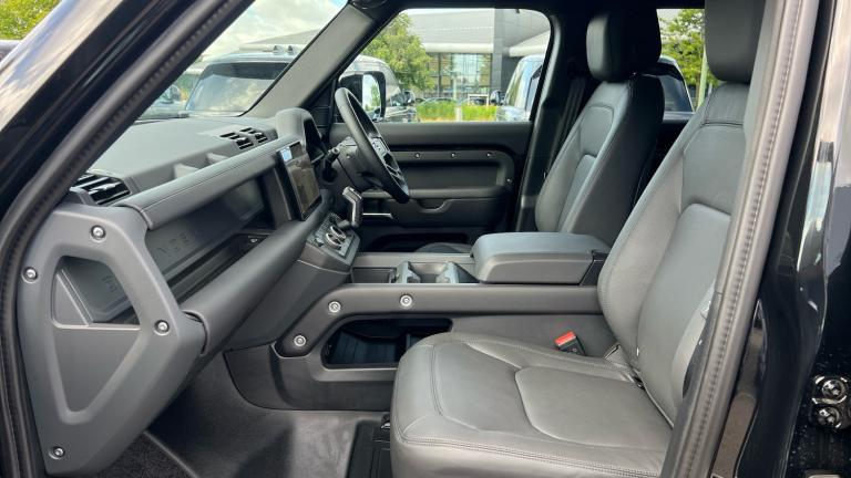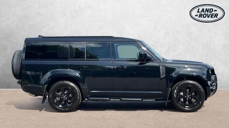 Our Defender 130 comes equipped with a brilliant range of features and optional extras, and sports a huge cargo space for incredible versitility. Call today for more information. Our Defender 130 X-Dynamic HSE is finished in Santorini Black matched with the Extended Black Exterior Pack and 20-inch Style 6011 wheels in Gloss Black, over Ebony Windsor leather interior, and comes equipped with some brilliant features and optional extras, including, 14-way Heated and Cooled front seats with Memory function, Three-zone Climate Control, Meridian Surround Sound System, Privacy Glass, Sliding Panoramic Roof, Matrix LED Headlights, Keyless Entry, Adaptive Cruise Control, Lane Keep Assist, Blind Spot Assist, 360-degree Parking Aids, 3D Surround Camera, Apple CarPlay and Android Auto, DAB Radio, Wireless Device Charging, Front centre console refrigerator compartment, Domestic Plug Socket, Electrically Deployable Tow Bar, Fixed Side Steps, Classic Mud Flaps, and much more. Call today for more information. PRICE INCLUDES 6,000 GBP DEPOSIT CONTRIBUTION WHEN FUNDED WITH JLR FS.