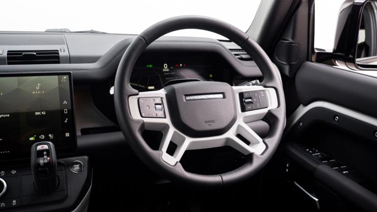 ..[Optional Extra] Borasco Grey Metallic, [Optional Extra] Extended Black Exterior Pack, [Optional Extra] 20'' 5-Spoke Satin Dark Grey Alloys, [Optional Extra] Contrast Black Roof, [Optional Extra] Sliding Panoramic Sunroof, [Optional Extra] Fixed Side Steps, [Optional Extra] Mudflaps, 1 x USB-C (power only) & 1 x USB-C (power & data) in Row 1, 2 x USB-C in Row 2,11.4'' touchscreen,360 degree parking aid,3D Surround Camera with 360 View, 180 Rear View, Front Traffic Detection, Forward Vehicle Guidance, Tow Hitch Assist and clear sight Ground View,Adaptive cruise control,Android Auto,Apple CarPlay,Blind spot assist,Bluetooth system,Brake pad wear indicator,Clear exit monitor,Connected navigation pro,Driver attention monitoring system,Electric power assisted steering (EPAS),Interactive driver display,Lane keep assist,Push button start,Rear collision monitor,Rear traffic monitor,Traffic sign recognition with adaptive speed limiter,Trip computer,Wireless device charging,8 speed automatic transmission,All wheel drive system,Twin speed transfer box,DAB Radio (Digital Audio Broadcasting),Meridian 400w sound audio system with 11 speakers and subwoofer,Pivi pro connected,Automatic headlight levelling,Automatic headlights,Black exposed rear recovery eyes,Body coloured bonnet,Darkened LED tail lights,Electric heated/power fold door mirrors with approach lights and auto dimming driver side,Electric windows with one touch open/close and anti-trap,Follow me home lighting,Front fog lights,Heated rear window with timer,Heated windscreen,LED 3rd brake light,LED tail lights,Privacy glass,Puddle lights,Rain sensing windscreen wipers,Rear fog lights,Rear side wing doors,Rear wiper,Side hinged tailgate,Standard tail door,Trailer stability assist,X-Dynamic badge,12V power socket in loadspace,3 seat bench in 2nd row,Alpine lights,Configurable cabin lighting,Durable rubber cabin flooring,Durable rubber loadspace flooring,Ebony carpet mats,Footwell lights,Front head restraints,Front passenger isofix child seat attachment,Loadspace cover,Loadspace Hook,Multifunction steering wheel,No flat load floor storage,Overhead stowage for sunglasses,Rear headrests,Rear ISOFIX,Rear reading lights,Single front passenger seat,Standard seat configuration,Storage glovebox,Sunvisors with illuminated vanity mirrors,Twin front cupholders,Non-smoker package,Online pack with data plan - Defender,5 x 3 point seatbelts,ABS,Brake hold function,Cornering brake control (CBC),Customer configurable