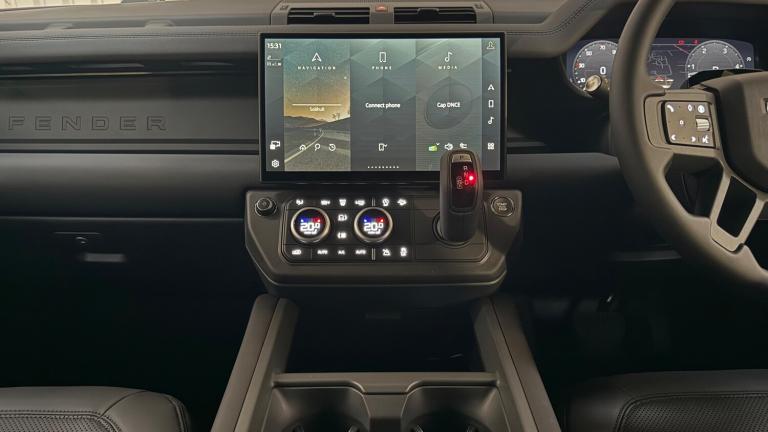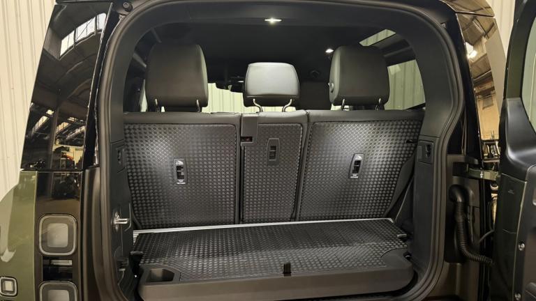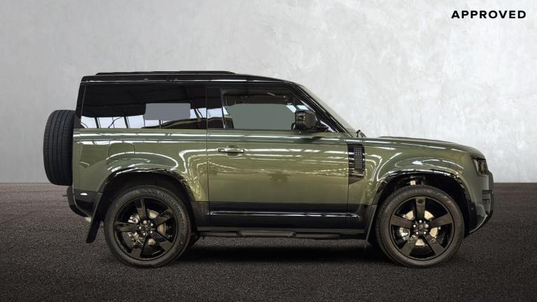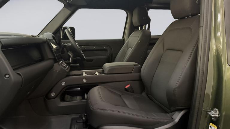 Available from 04/04/2026. Land Rover Defender Diesel Estate 3.0 D250 X-Dynamic SE 90 3dr Auto in Woolstone Green. Specification Includes 1 x USB-C (power only) & 1 x USB-C (power & data) in Row 1 2 x USB-C in Row 2, 11.4 touchscreen, 12V power socket in loadspace, 22 5 spoke alloy wheels with Gloss Black finish - Style 5098, 22 full size alloy spare wheel, 3 seat bench in 2nd row, 360 degree parking aid, 3D Surround Camera with 360 View 180 Rear View Front Traffic Detection Forward Vehicle Guidance Tow Hitch Assist and clear sight Ground View, 5 x 3 point seatbelts, 8 speed automatic transmission, ABS, Adaptive cruise control, Alarm, All wheel drive system, Alpine lights, Android Auto, Apple CarPlay, Automatic Headlight Levelling, Automatic headlights, Black exposed rear recovery eyes, Black roof rails, Blind spot assist, Bluetooth system, Body coloured bonnet, Brake hold function, Brake pad wear indicator, Clear exit monitor, Configurable cabin lighting, Connected navigation pro, Cornering brake control (CBC), Cross car beam in dark grey powder coat brushed finish, Customer configurable autolock, DAB Radio (Digital Audio Broadcasting), Darkened LED tail lights, Driver and passenger airbags, Driver attention monitoring system, DSC - Dynamic Stability Control, Durable rubber cabin flooring, Durable rubber loadspace flooring, EBD - Electronic brakeforce distribution, Ebony carpet mats, Electric heated/power fold door mirrors with approach lights and auto dimming driver side, Electric parking brake (EPB), Electric power assisted steering (EPAS), Electric windows with one touch open/close and anti-trap, Emergency brake assist, Emergency braking, ESP + traction control, Extended black exterior pack - Defender X-Dynamic, Flat load space floor tray, Follow me home lighting, Footwell lights, Front airbags with passenger seat occupant detector, Front fog lights, Front head restraints, HDC - Hill descent control, Heated rear window with timer, Heated windscreen, Hill launch assist, Immobiliser, Interactive driver display, Intrusion sensor, Keyless entry, Lane keep assist, LED 3rd brake light, LED tail lights, Loadspace cover, Loadspace Hook, Locking wheel nuts, Low traction launch, Meridian 400w sound audio system with 11 speakers and subwoofer, Metallic - Woolstone Green, Multifunction steering wheel, Non-smoker package, Online pack with data plan - Defender, Overhead stowage for sunglasses, Panoramic rear side glass, Pivi pro connected, Privacy glass, Puddle