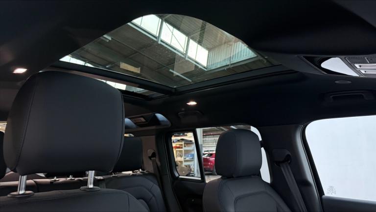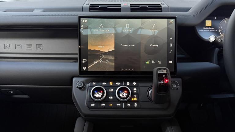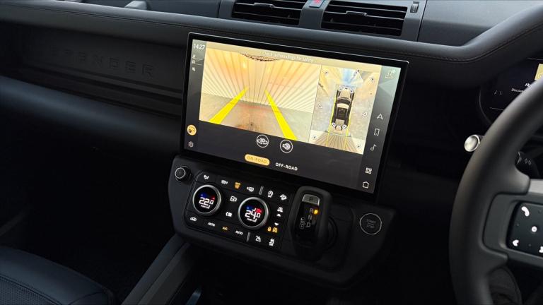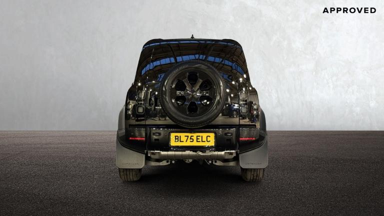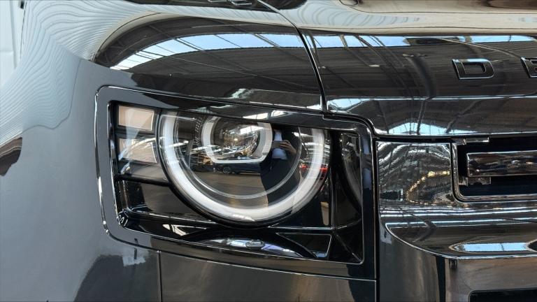 Available from 03/04/2026. Land Rover Defender Estate 2.0 P300e X-Dynamic SE 110 5dr Auto (NI) in Santorini Black. Specification Includes 1 x USB-C (power only) & 1 x USB-C (power & data) in Row 1 2 x USB-C in Row 2, 11.4 touchscreen, 12V power socket in loadspace, 20 6 spoke alloy wheels with Gloss Black finish - Style 6011, 3 seat bench in 2nd row, 360 degree parking aid, 3D Surround Camera with 360 View 180 Rear View Front Traffic Detection Forward Vehicle Guidance Tow Hitch Assist and clear sight Ground View, 5 x 3 point seatbelts, 8 speed automatic transmission, ABS, AC/DC charging, Adaptive cruise control, Adaptive dynamics, Alarm, All wheel drive system, Alpine lights, Android Auto, Apple CarPlay, Automatic Headlight Levelling, Automatic headlights, Black exposed rear recovery eyes, Blind spot assist, Bluetooth system, Body coloured bonnet, Brake hold function, Brake pad wear indicator, Clear exit monitor, Cold climate Pack - Defender, Configurable cabin lighting, Connected navigation pro, Cornering brake control (CBC), Customer configurable autolock, DAB Radio (Digital Audio Broadcasting), Darkened LED tail lights, Driver and passenger airbags, Driver attention monitoring system, DSC - Dynamic Stability Control, Durable rubber cabin flooring, Durable rubber loadspace flooring, EBD - Electronic brakeforce distribution, Ebony carpet mats, Electric heated/power fold door mirrors with approach lights and auto dimming driver side, Electric parking brake (EPB), Electric power assisted steering (EPAS), Electric windows with one touch open/close and anti-trap, Electrically deployable towbar, Electronic air suspension, Emergency brake assist, Emergency braking, ESP + traction control, Extended black exterior pack - Defender X-Dynamic, Follow me home lighting, Footwell lights, Front airbags with passenger seat occupant detector, Front fog lights, Front head restraints, Front passenger isofix child seat attachment, HDC - Hill descent control, Heated rear window with timer, Heated windscreen, Hill launch assist, Home charging cable mode 2 basic, Immobiliser, Interactive driver display, Intrusion sensor, Keyless entry, Lane keep assist, LED 3rd brake light, LED tail lights, Loadspace cover, Loadspace Hook, Locking wheel nuts, Low traction launch, Meridian 400w sound audio system with 11 speakers and subwoofer, Multifunction steering wheel, No flat load floor storage, Non-smoker package, Online pack with data plan - Defender, Overhead stowage for sunglasses,