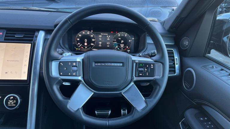 Discover refined capability with this Approved Used Land Rover Discovery 3.0 D350 Dynamic HSE, a premium 5-door automatic diesel station wagon that perfectly balances luxury, technology and all-terrain confidence. Finished in striking Santorini Black, this Discovery makes a bold and sophisticated statement, complemented beautifully by an Ebony interior trimmed in sumptuous Windsor leather.Powered by the smooth and responsive 3.0-litre D350 diesel engine, this Discovery delivers effortless performance with impressive refinement, whether cruising on the motorway or tackling more challenging terrain. The Dynamic HSE specification ensures a high level of standard equipment, combining comfort, innovation and advanced driver assistance systems for a truly first-class driving experience.This example is further enhanced with desirable additional features, including 22 Style 5124 Gloss Black alloy wheels (031YL), which add a powerful and athletic stance. The cabin is flooded with natural light thanks to the sliding front sunroof and fixed rear panoramic roof, creating an airy and luxurious environment for all occupants.As an Approved Used Land Rover, this vehicle has passed comprehensive checks and offers complete peace of mind. Spacious, versatile and impeccably appointed, this Discovery is the ideal choice for those who demand both everyday luxury and legendary Land Rover capability..Air Conditioning, Climate Control, Metallic Paint, Cruise Control, Satellite Navigation, Alloy Wheels, Leather Seats, Heated Seats, DAB Radio, Bluetooth, Panoramic Roof, Parking Sensors, Stop Start, Heated Front Windscreen, Full Service History, USB, Manufacturer Approved, Sun Roof, Electric Seats, Memory Seats, Adaptive cruise, Keyless Entry-Push Button Start, 7 Seats, Apple-Android Play, Rear Camera, Electric Opening Tailgate, Auto Lights, Electric Folding Mirrors, Lane Departure, Lane Keeping Assist, Pre Crash Prevention, Rain Sensors& 4x4, Premium carpet mats, Heated windscreen, Rear wash/wipe, Heated rear window, Privacy glass, Variable intermittent wiper, Rain sensing windscreen wipers, Acoustic laminated windscreen, Electric windows with one touch open/close and anti-trap, Electronic traction control, Cornering brake control, Hill descent control, ESP, Emergency brake assist, Roll stability control, Trailer stability assist, Gradient acceleration control