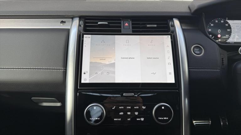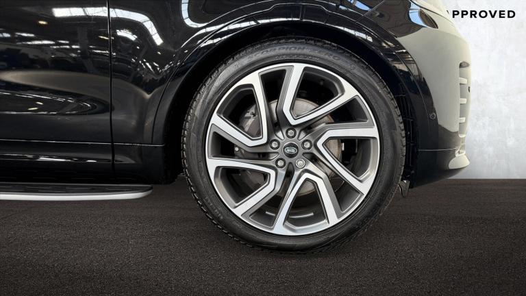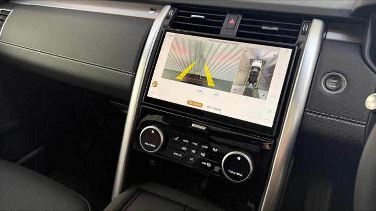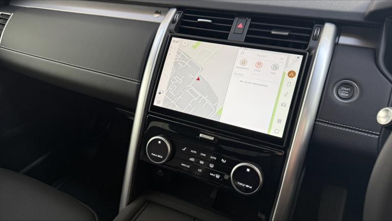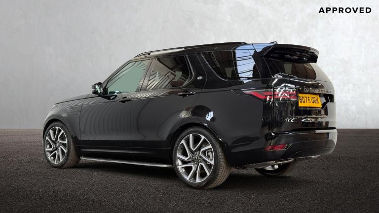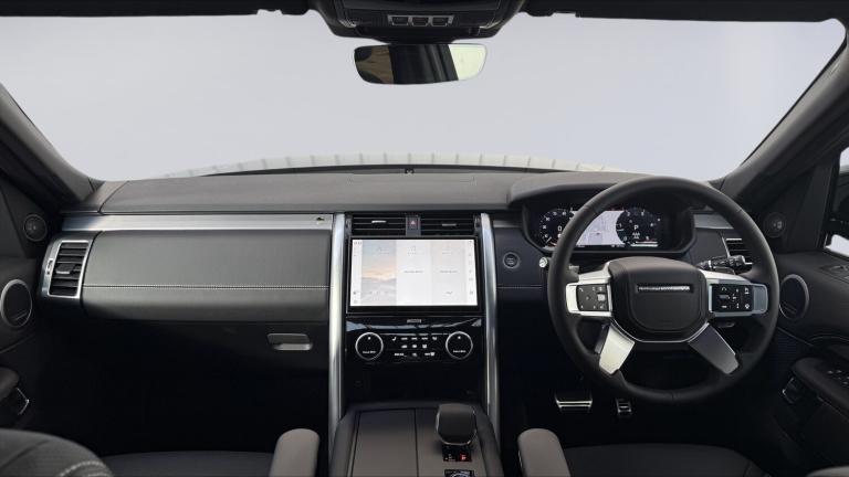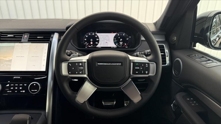 Available from 06/03/2026. Land Rover Discovery Diesel SW 3.0 D350 Dynamic HSE 5dr Auto in Santorini Black. Specification Includes 1 x 12V power socket in Row 1 Row 2 and loadspace, 1 x USB-C (power only) 1 x USB-A & 1 x USB-C (power & data) in Row 1, 11.4 touchscreen, 2 seat bench in 3rd row, 2 x USB-C in Row 2 (power only), 2 x USB-C in Row 3 (power only), 3 seat bench in 2nd row, 3D surround camera, 3x3 point rear seatbelts, 60/40 electric folding rear seats with manual slide and powered recline centre headrest and armrest, Acoustic laminated windscreen, Adaptive cruise control, Adaptive dynamics, All terrain tyres, Android Auto, Animated Directional Indicators, Anti-lock braking system (ABS), Apple car play, Auto dimming interior rear view mirror, Automatic Headlight Levelling, Automatic headlights, Black roof rails, Blind spot assist, Body colour bumpers, Body colour door handles, Brake pre-fill technology, Central hinged twin lidded storage, Centre high mounted stop light, Cold climate pack - Discovery Dynamic HSE, Configurable cabin lighting, Cornering brake control, Curtain airbags, Customer configurable autolock, Digital Audio Broadcast radio-DAB, Driver and passenger airbags, Driver condition monitor, Dynamic stability control, Dynamic volume control, EBD - Electronic brakeforce distribution, Ebony morzine headlining, Electric adjustable steering column, Electric heated/power fold memory door mirrors with approach lights and auto dimming driver side, Electric power assisted steering (EPAS), Electric windows with one touch open/close and anti-trap, Electronic air suspension, Electronic traction control, Emergency brake assist, Emergency braking, Emergency services call system, ESP, First and second row door bins, Footwell lights, Front and rear parking aid, Front axle open differential, Front passenger seat ISOFIX, Front side airbags, Gradient acceleration control, Heated and cooled front seats, Heated rear seats, Heated rear window, Heated windscreen, Hill descent control, Hill launch assist, Immobiliser, In-facia storage, Interactive driver display, Intrusion sensor, Isofix child seat preparation for front passenger seat, Keyless entry, Lane keep assist, Leather steering wheel, LED darkend tail lights, Loadspace cover, Loadspace Hook, Loadspace light, Lockable glovebox, Locking wheel nuts, Lower centre console storage, Luggage tie downs in loadspace, Matrix LED headlights with signature DRL, Meridian surround sound system - 14 speaker +