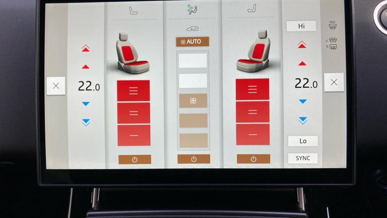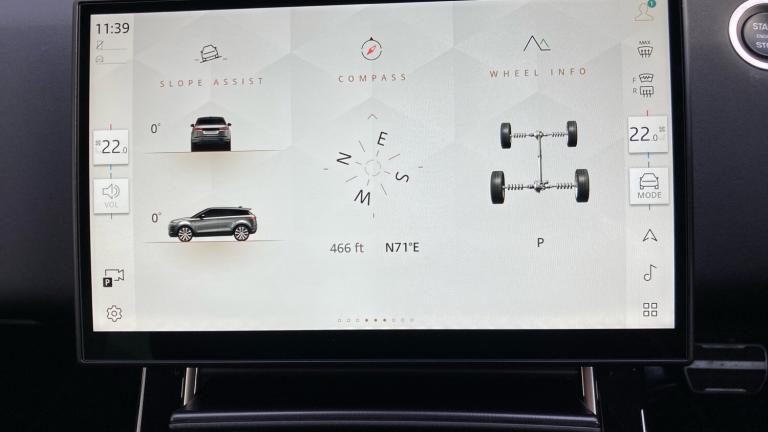.Carpet mats, Heated windscreen, Rear wiper, Heated washer jets, Heated rear window with timer, Rain sensing windscreen wipers, Acoustic laminated windscreen, Electric windows with one touch open/close and anti trap, Winter wiper park position, Electronic traction control, Electronic brake force distribution, Hill descent control, DSC - Dynamic Stability Control, Electronic parking brake, Roll stability control, Torque vectoring brake, Hill Launch assist, Efficient Driveline, Anti-lock Braking System (ABS), Brake hold function, All terrain progress control, Terrain Response 2, Voice control system, Land rover incontrol apps, InControl remote, Apple car play, Bluetooth connectivity, Wireless device charging, Adaptive cruise control, Lane keep assist, Eco mode, Blind spot assist, Low traction launch, Traffic sign recognition with adaptive speed limiter, Rear traffic monitor, Electronic power assisted steering (EPAS), Rear Collision Monitor