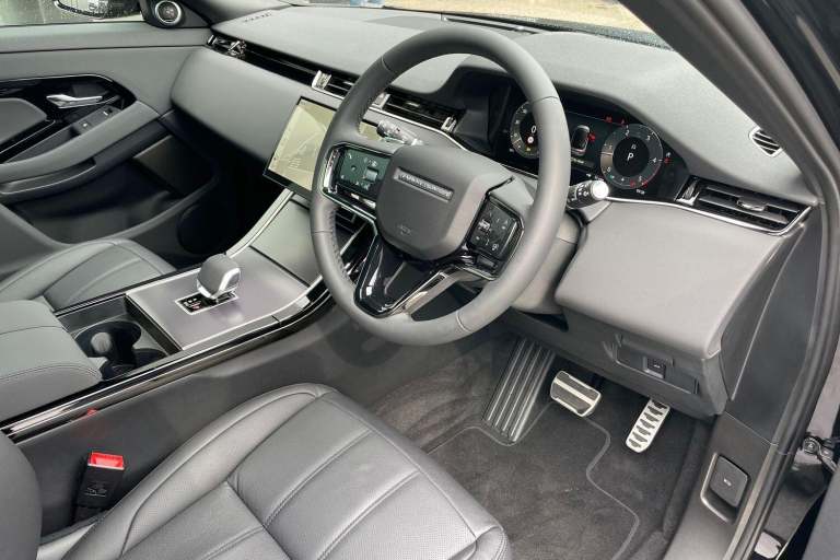 SANTORINI BLACK EXTERIOR WITH 19 INCH GLOSS BLACK ALLOY WHEELS AND BLACK BRAKE CALIPERS, BLACK EXTERIOR STYLING PACK, TINTED WINDOWS - PRIVACY GLASS, FIXED PANORAMIC SUNROOF, 3D SURROUND CAMERA, REAR PARKING CAMERA, DUAL ZONE CLIMATE CONTROL, ADAPTIVE CRUISE CONTROL, ALL WHEEL DRIVE, MERIDIAN SOUND SYSTEM WITH DAB RADIO, ANDROID AUTO AND APPLE CARPLAY, WIRELESS DEVICE CHARGER, AUTO HIGH BEAM ASSIST, AUTO TERRAIN RESPONSE, BLIND SPOT ASSIST, FRONT AND REAR PARKING AID, POWERED/HEATED FRONT SEATS WITH LUMBAR SUPPORT AND DRIVER SEATING POSITION MEMORY FUNCTION, LED HEADLIGHTS, HEATED WINDSCREEN, HEATED STEERING WHEEL, HEATED WASHER JETS, HEATED/POWER FOLDING MIRRORS, AUTO DIMMING INTERIOR REAR VIEW MIRROR, ISOFIX CHILD SEAT FIXINGS, KEYLESS ENTRY WITH PUSH BUTTON START, LANE KEEP ASSIST, GEAR PADDLE SHIFTERS, ONLINE PACK WITH DATA PLAN (SUBSCRIPTION REQUIRED), POWERED TAILGATE, REAR PROTECTION ASSIST, REVERSE TRAFFIC DETECTION WITH AUTOBRAKING, SECURE TRACK PRO (SUBSCRIPTION REQUIRED), TRAFFIC SIGN RECOGNITION WITH ADAPTIVE SPEED LIMITER, VOICE ACTIVATED CONTROLS AND MUCH MORE. This car comes with the balance of the manufacturer’s warranty until 20/05/2028.Harwoods Jaguar Land Rover Brighton are delighted to offer this Land Rover EVOQUE 2.0L D200 Dynamic SE AWD Auto.If this isn't the right car for you our Group stock has specification to include Sunroof, Leather, . Heated Seats, Apple Car Play, Heated Steering Wheel, Reverse Camera, Rear Entertainment, 360-degree camera, Meridian Audio, Panoramic Sun Roof, Black Pack, Air Suspension, Adaptive Cruise, Apple Carplay, Massage Seats, Refrigerator, Dynamic Pack, Head up Display, Hard Top, Utility, Autobiography, SVR, AWD, LWB. Other colour options including Black, Blue, Green, Silver, White, Red, Grey & SVO. Interior options of Ebony, Black, Ivory, White, Tan, Cream, Oyster, Caraway, Pimento, & Euro 6 ULEZ compliant drive trains. **(As a Land Rover approved centre, we can service Urban, Overfinch, & Twisted converted vehicles too)**