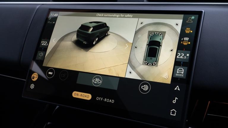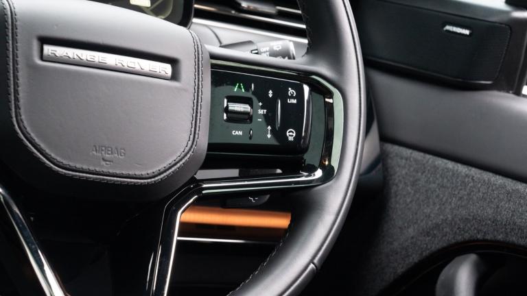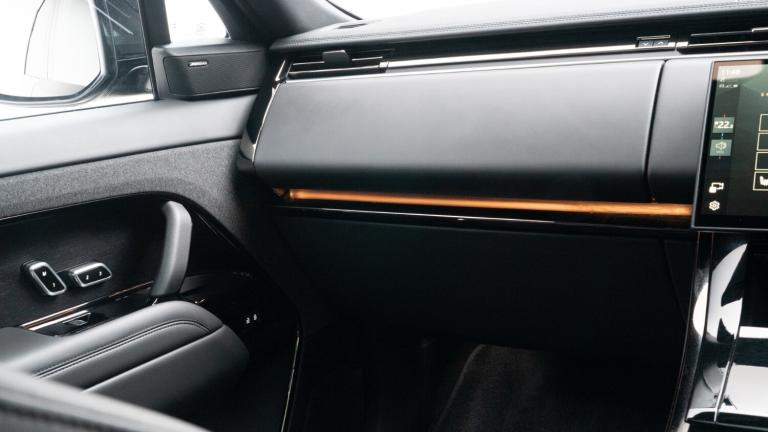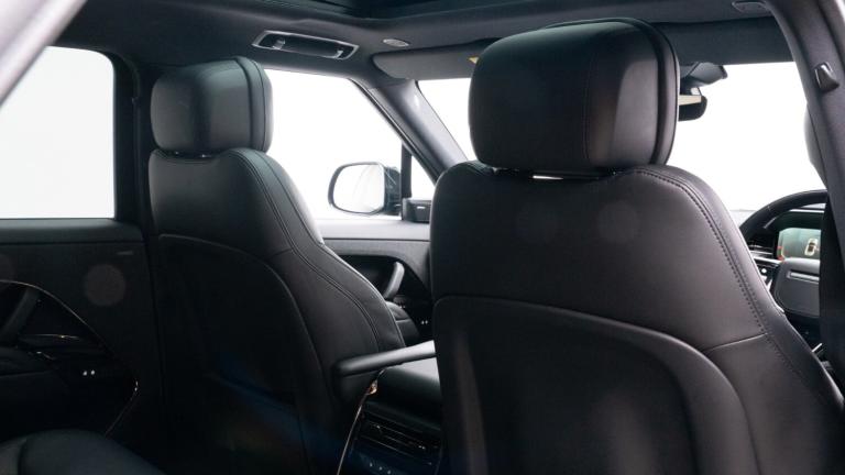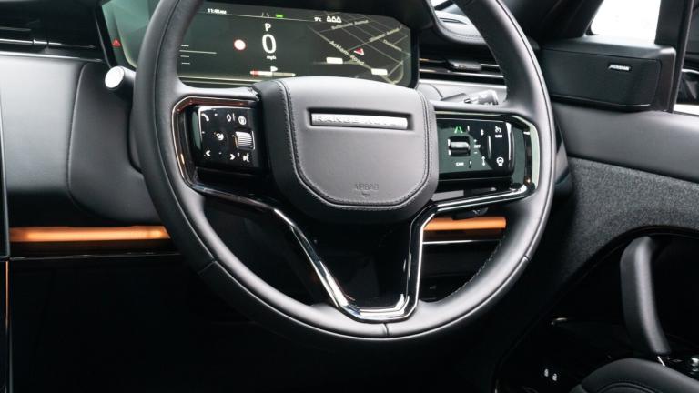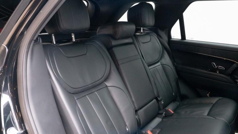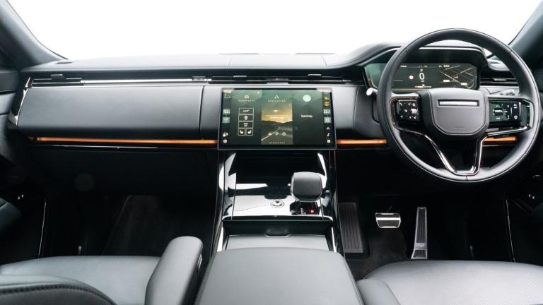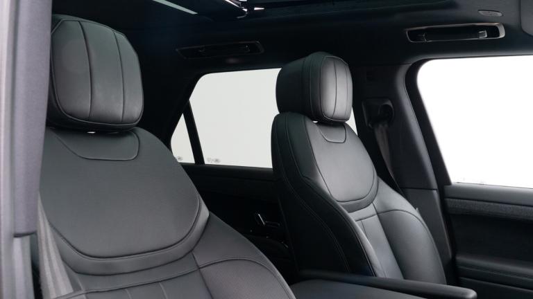 ..[Optional Extra] Santorini Black Metallic, [Optional Extra] 23'' Diamond Turned/Gloss Dark Grey Alloys, [Optional Extra] Privacy Glass, [Optional Extra] Sliding Panoramic Sunroof, 13.1'' Touchscreen,3D 360 degree surround camera with wade sensing,Adaptive cruise control with steering assist,Android Auto,Apple car play,Blind spot assist,Bluetooth connectivity streaming,Driver monitoring and response,Eco mode,Front and rear parking aid,Interactive Driver display instrument cluster,Lane departure warning system,Lane keep assist,Push button start,Rear collision monitor,Rear traffic monitor,Remote,Traffic sign recognition with adaptive speed limiter,Trip computer,Wireless device charging,8 speed automatic transmission,Adaptive dynamics,All wheel drive system,Automatic access height,Terrain Response 2,DAB Radio (Digital Audio Broadcasting),Incontrol protect - SOS emergency call with automatic collision detection, optimised assistance call and Incontrol remote app essential,Pivi pro connected,USB/aux input socket,Adaptive brake lights,Automatic headlight levelling,Automatic headlights,Centre high mounted stop light,Electric heated/power fold memory door mirrors with approach lights and auto dimming driver side,Electric windows with one touch open/close and anti trap,Engine cover,Flush deployable exterior door handles,Follow me home lighting,Front and rear recovery eyes,Headlight power wash,Heated rear window,Heated washer jets,Heated windscreen,Illuminated aluminium treadplates with Range Rover script,LED tail lights,Metal load space scuff plates,No badges,Rain sensing windscreen wipers,Rear animated directional indicators,Rear fog lights,Rear side wing doors,Rear wash/wipe,Remote window closing,Side repeater indicators in mirror,Trailer stability assist,Winter wiper park position,3 seat bench in 2nd row,60:40 seats with power recline and loadthrough,Air quality sensor,Auto air recirculation,Bright metal foot pedals,Centre console with armrest,Customer configurable single point entry,Driver's footrest,Easy boot loading,Ebony console door armrests and seatbelts,Electric adjustable steering column,Front and rear cupholders,Front door storage space,Front head restraints,Front map lights,Front seat back map pockets,Front stowage pocket,Front/rear passenger grab handles,Heated steering wheel,Isofix child seat preparation,Loadspace cover,Loadspace Hook,Loadspace light,Loadspace mounting provisions,Lockable glovebox,Luggage tie-downs in loadspace,Multifunction