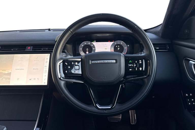 Finished in elegant Varesine Blue, this Range Rover Velar 2.0 D200 Autobiography offers flagship luxury, advanced technology, and refined performance in a beautifully styled SUV. As the range-topping Autobiography model, it delivers a noticeably higher level of comfort and specification throughout, and is VAT qualifying. Externally, the Velar is enhanced by 22 Style 1075 Gloss Black alloy wheels, a black contrast roof, black roof rails, privacy glass, and Pixel LED headlights with signature DRL. A powered tailgate, animated rear indicators, Secure Tracker Pro, and front and rear mudflaps complete this highly specified and desirable Autobiography Velar. The interior is finished in Ebony extended Windsor leather, complemented by Shadow Grey Ash veneer, bright metal pedals, and refined cabin lighting. Comfort is a priority with 20-way electric front seats with driver memory, rear power recline, heated front and rear seats, a heated steering wheel, heated windscreen, and two-zone climate control. The sliding panoramic roof adds light and openness to the cabin. Technology is led by the Pivi Pro infotainment system with Apple CarPlay and Android Auto, wireless device charging, Meridian 3D Surround Sound System, and DAB radio. Driver assistance features include Adaptive Cruise Control with Steering Assist, 3D Surround Camera, front and rear parking aids, blind spot assist, lane keep assist, rear traffic monitoring, and traffic sign recognition. Stafford Land Rover are part of the...