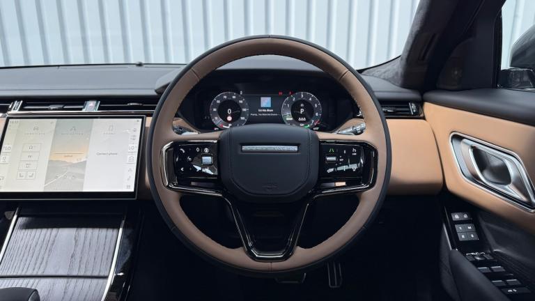 Available from 01/09/2026. Land Rover Range Rover Velar Estate 2.0 P400e Autobiography 5dr Auto (Revised) (NI) in Giola Green. Specification Includes 21 satin dark grey alloy wheels - Style 5109, 3 seat bench in 2nd row, 380mm front brakes and 325mm rear brakes, 3D surround camera includes forward traffic detection and vehicle guidance, 3rd brake light, 3x3 point rear seatbelts, 7kw on board charger, 8 speed automatic transmission, AC/DC charging, Acoustic laminated windscreen, Adaptive cruise control with steering assist, Adaptive dynamics, All season tyres, All terrain progress control, Ambient lighting, Android Auto, Anti-lock braking system (ABS), Apple CarPlay, Auto dimming interior rear view mirror, Autobiography badge, Automatic headlamp levelling, Automatic headlights, Black exterior style pack - Velar, Black roof rails, Blind spot assist, Bluetooth connectivity, Body coloured bumpers, Boot protection plate, Brake pad wear indicator warning light, Bright metal pedals, Carpet mats, Coil suspension system, Contrast bonnet in burnished copper & rear lettering, Cornering brake control, Curtain airbags, Customer configurable autolock, DAB radio, Door side intrusion beams, Driver airbag, Driver condition monitor, Driver/passenger sunvisors with illuminated vanity mirrors, DSC - Dynamic Stability Control, Ebony suedecloth headlining, eCall emergency call system, Electric windows with one touch open/close and anti trap, Electrically adjustable steering column, Electronic brake force distribution, Electronic parking brake, Electronic traction control, Emergency braking, Extended perforated windsor leather - Caraway/Ebony, Flush deployable exterior door handles, Follow me home headlights, Front and rear parking aid, Front and rear seatbelt reminder, Full extended leather upgrade, Global lock and unlock switch on driver door, Heated front seats, Heated rear window with timer, Heated steering wheel, Heated washer jets, Heated windscreen, Hill descent control, Hill launch assist, Immobiliser, InControl remote, Intrusion sensor, Isofix system on outer rear seats, Keyless entry, Land Rover InControl apps, Lane keep assist, Loadspace cover, Lock only switch on front passenger door, Locking wheel nuts, Low traction launch, Metal load space scuff plates, Metallic - Giola green, Narvik black contrast roof and door mirror caps, Online pack with data plan - Velar, Open differential with torque vectoring by braking, Overhead lighting console, Overhead stowage for
