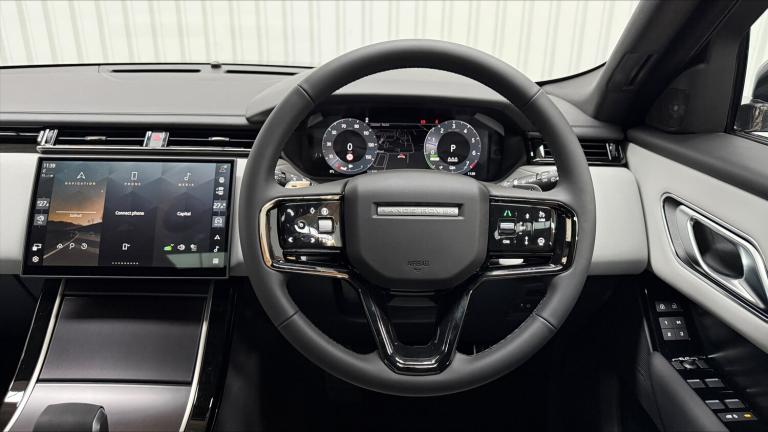 Available from 13/11/2026. Land Rover Range Rover Velar Estate 2.0 P400e Dynamic SE 5dr Auto (NI) in Charente Grey. Specification Includes 14 way electrically adjustable front seats with driver's memory function, 21 5 split spoke gloss black alloy wheels - Style 5109, 3 seat bench in 2nd row, 380mm front brakes and 325mm rear brakes, 3D surround camera includes forward traffic detection and vehicle guidance, 3rd brake light, 3x3 point rear seatbelts, 7kw on board charger, 8 speed automatic transmission, AC/DC charging, Acoustic laminated windscreen, Adaptive dynamics, All season tyres, All terrain progress control, Ambient lighting, Android Auto, Anti-lock braking system (ABS), Apple CarPlay, Auto dimming interior rear view mirror, Auto high beam assist, Automatic headlamp levelling, Automatic headlights, Black roof rails, Blind spot assist, Bluetooth connectivity, Body coloured bumpers, Boot protection plate, Brake pad wear indicator warning light, Bright metal pedals, Carpet mats, Coil suspension system, Cold Climate pack - Velar, Cornering brake control, Curtain airbags, Customer configurable autolock, DAB radio, Door side intrusion beams, Driver airbag, Driver condition monitor, Driver/passenger sunvisors with illuminated vanity mirrors, DSC - Dynamic Stability Control, Ebony morzine headlining, eCall emergency call system, Electric windows with one touch open/close and anti trap, Electrically adjustable steering column, Electronic brake force distribution, Electronic parking brake, Electronic traction control, Emergency braking, Flush deployable exterior door handles, Follow me home headlights, Front and rear parking aid, Front and rear seatbelt reminder, Front fog lights, Global lock and unlock switch on driver door, Heated rear window with timer, Heated steering wheel, Heated washer jets, Heated windscreen, Hill descent control, Hill launch assist, Immobiliser, InControl remote, Intrusion sensor, Isofix system on outer rear seats, Keyless entry, Land Rover InControl apps, Lane keep assist, LED headlights with signature DRL, Loadspace cover, Lock only switch on front passenger door, Locking wheel nuts, Low traction launch, Metal front tread plates, Metal load space scuff plates, Online pack with data plan - Velar, Open differential with torque vectoring by braking, Overhead lighting console, Overhead stowage for sunglasses, Passenger airbag, Passive front headrests, Perimetric alarm, Pivi pro with connected navigation, Power fold auto-dimming heated