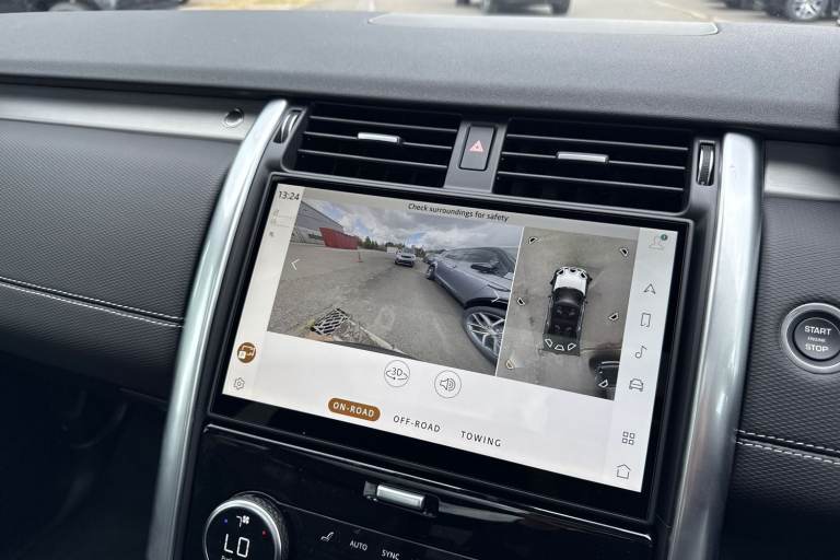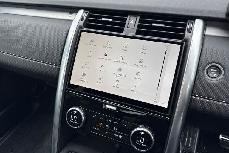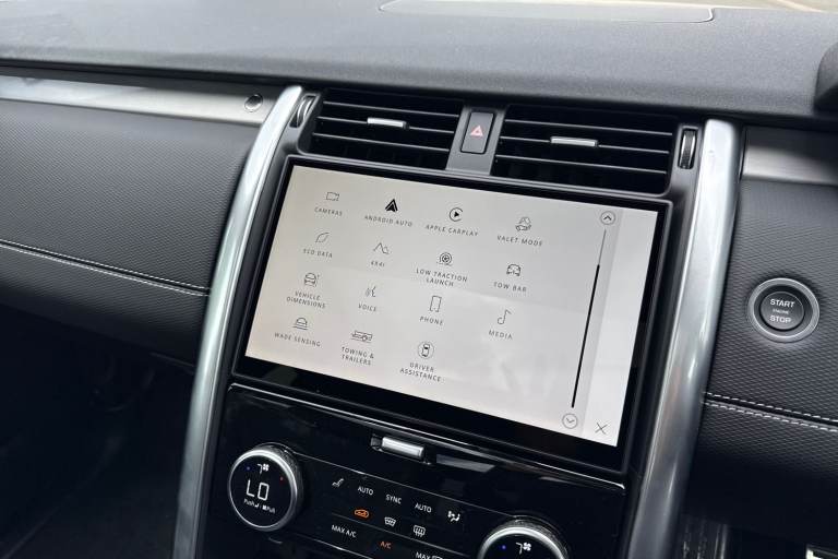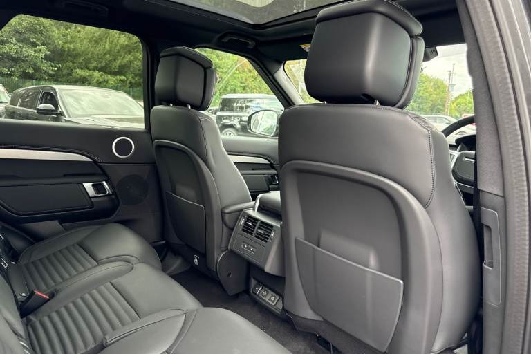 Here we have the Land Rover Discovery Dynamic HSE. Seen here in the wonderful Carpathian Grey, this vehicle features a 3.0L Diesel engine which is seamlessly mated to a smooth automatic gear box. starting from the front you will see the Matrix LED headlights with signature Day Time Running Lights which alongside LED taillights will ensure increased road presence alongside a sharper view of the world ahead. Further features you will enjoy are the privacy glass ensuring all contents and passengers are safe from prying eyes as it sits proudly on a set of 22inch Diamond turned Alloy Wheels. You will find convenience in a fully powered tailgate which can also be opened via a single press of the key as well as an easy to access button under the tailgate perfect for easy loading and when hands are full and this vehicle also come equipped with a towing pack for our towing enthusiasts out there. Rear Passengers will be impressed with the comfort and quality of the ebony Leather seats and their own climate control systems, and glimpsing into the cockpit the epitome luxury continues with 22-way heated, electric driver memory seat with captains armrest which will ensure comfort on any length of journey rain or shine. Front and rear passengers will further enjoy premium cabin lighting and their fixed front and rear panoramic sunroof which will engross the cabin in natural light. Taking a closer look at the Leather Multifunctional steering wheel which also has many features at its d...