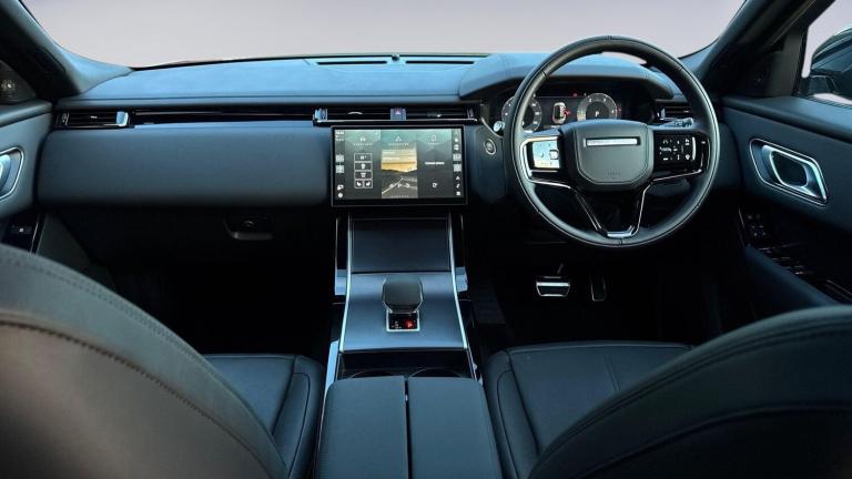 Available from 15/05/2026. Land Rover Range Rover Velar Diesel Estate 2.0 D200 MHEV Dynamic SE 5dr Auto in Varesine Blue. Specification Includes 14-way driver memory front seats, 20 Style 1089 Satin Dark Grey Wheels, 3D surround camera, Adaptive Cruise Control with Steering Assist, All-season tyres, Android Auto™ (subject to availability), Apple CarPlay® (subject to availability), Auto High Beam Assist (AHBA), Black brake calipers, Black Brushed Aluminium finisher, Black Exterior Pack, BLACK EXTERIOR STYLING PACK, Black roof rails, Blind Spot Assist, Body-coloured roof, Bright metal pedals, Cabin lighting, Carpet mats, Coil suspension, Digital Audio Broadcast (DAB) radio, Driver Assist Pack, Driver Condition Monitor, Ebony interior with grained leather, Electrically adjustable steering column, Emergency Braking, Fixed panoramic roof, Front and Rear Parking Aid, Heated electric power fold door mirrors with approach lights and auto-dimming driver side, Heated front seats, Heated steering wheel, Heated washer jets, Heated windscreen, Intrusion sensor, Lane Keep Assist, Leather steering wheel with Moonlight bezel, LED headlights with signature DRL, Lockable glovebox, Meridian™ Sound System, Metal front treadplates, Online Pack with Data Plan, Passive suspension, Pivi Pro (Connected), Power Socket Pack 2, Powered tailgate / boot lid, Privacy glass, Rear Animated Directional Indicators, Rear Collision Monitor, Rear Traffic Monitor, Remote, Secure Tracker Pro (12-month subscription), Terrain Response with Dynamic Program, Traffic Sign Recognition and Adaptive Speed Limiter, Two-zone Climate Control, Tyre Pressure Monitoring System (TPMS), Wade sensing, Wireless device charging.