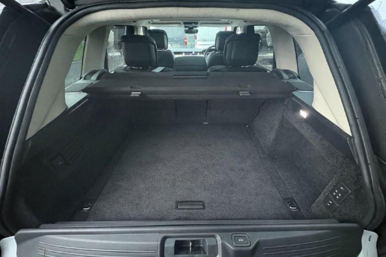 Other notable features include auto-dimming, power-folding, and heated door mirrors with memory settings and approach lights, along with an acoustic laminated windscreen for enhanced cabin quietness. It also offers adaptive cruise control with stop and go functionality, electric windows, an electronic parking brake, and towing preparation with an electric hook-up. The steering column is electrically adjustable, and the vehicle benefits from an electronic cross-linked air suspension system for a smoother ride. Further enhancing comfort and safety are front fog lights, four-zone climate control, keyless entry, and pixel LED headlights with a follow-me-home function. The vehicle also features daytime running lights, roll stability control, ISOFIX child seat preparation, hill descent control, a power gesture tailgate, and a stylish two-tone multifunction leather steering wheel.
