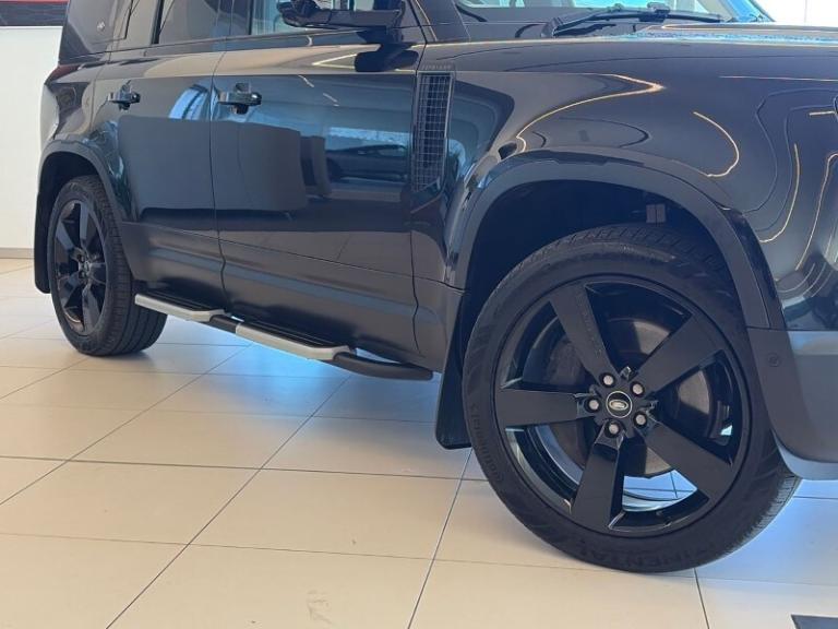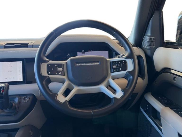 Here at Lloyd Jaguar Land Rover York, we are proud to present this commanding and highly capable Land Rover Defender 110 finished in Santorini Black with a luxurious Acorn Taurus Leather interior with a refined Lunar Acorn colourway. First registered in November 2022, this vehicle has covered 28,548 miles and comes with a full service history, not due again until November 2026. As part of the Land Rover Approved Programme, it offers complete peace of mind with a minimum 12-month Approved Warranty and 12 months Europe-wide roadside assistance. Every vehicle undergoes a comprehensive inspection and preparation process to ensure the highest standards of safety, reliability and performance, with a warranty that is valid at any UK VAT-registered garage, including main dealers, and is fully transferable and supported across Europe. Powered by a refined 3.0-litre D250 diesel engine producing 250PS, paired with a smooth automatic gearbox and intelligent all-wheel drive, this Defender delivers effortless performance both on and off the road. Acceleration is strong and confident for a vehicle of its size, while still achieving around 30 35 mpg, helping to balance power with manageable running costs. With an impressive real-world commute range of approximately 500 650 miles per tank, it s perfectly suited to long-distance driving, daily use or weekend adventures without compromise. This example stands out with its bold presence, enhanced by 22'' Style 5098 Gloss Black alloy wheels, a matching full-size spare and the Black Exterior Pack, giving it a sleek, stealthy finish. Practicality is elevated with roof rails and an electrically deployable tow bar, allowing you to tow with ease at the touch of a button, whether for work or leisure, while privacy glass adds both style and comfort by keeping the cabin cooler and more secluded. Inside, the Defender offers a premium, high-tech environment designed for both comfort and convenience. Heated front seats and driver and passenger memory settings allow you to find and save your perfect driving position, while 2-zone climate control ensures both driver and passenger can set their ideal temperature. The sliding panoramic roof floods the cabin with natural light, creating a bright and open feel on every journey. Technology and safety are at the heart of this vehicle. Adaptive Cruise Control with Stop & Go automatically maintains a safe distance from the vehicle ahead, even in traffic, taking the stress out of long journeys.