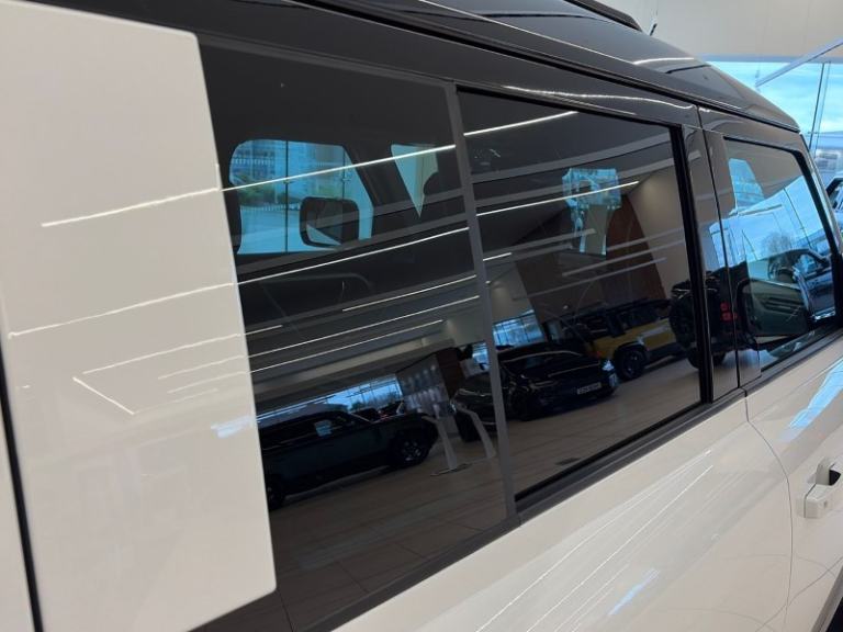 Here at Lloyd Jaguar Land Rover York, we are pleased to present this stunning Defender 3.0 D250 X-Dynamic HSE 110 5Dr Auto 6 Seat Estate, finished in Fuji White with an Ebony leather interior. First registered in November 2025 and covering just 2021 miles, this vehicle remains in excellent condition. Due to its age and mileage, it has not yet reached its first service interval and will not be due its first service until November 2027. As part of the Land Rover Approved Programme, it benefits from the remainder of the manufacturer warranty plus a minimum 12 months Approved Warranty and 12 months Europe-wide roadside assistance, giving you complete peace of mind. Every vehicle also undergoes a comprehensive inspection and preparation process to ensure the highest standards of safety, reliability and performance. This Defender perfectly blends rugged capability with refined luxury and everyday practicality. The Air Suspension Pack automatically adjusts ride height for enhanced comfort on the road and increased ground clearance when tackling tougher terrain. Its bold presence is enhanced by 20'' Style 5098 Satin Dark Grey alloy wheels, while the distinctive cross car beam in Dark Grey Powder Coat with a brushed finish adds a striking design feature to the cabin. Inside, versatility meets premium comfort with a practical front jump seat providing additional seating when needed. Heated and cooled front seats with driver and passenger memory ensure year-round comfort, while the heated steering wheel adds warmth on colder mornings. The sliding panoramic roof floods the cabin with natural light, creating a bright and spacious feel. Technology enhances every journey, with the Meridian Surround Sound System delivering rich, immersive audio throughout the cabin, while the 3D Surround Camera provides a clear view around the vehicle for easier manoeuvring and parking. The Towing Pack adds further practicality, making this Defender ideal for towing trailers, boats or caravans. Powered by the refined D250 engine, it delivers strong performance with impressive capability, making it equally suited to daily driving, long-distance journeys and off-road adventures.