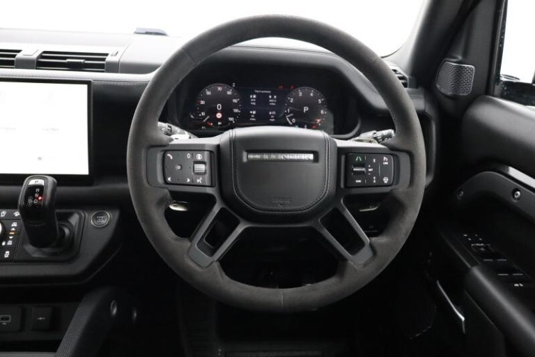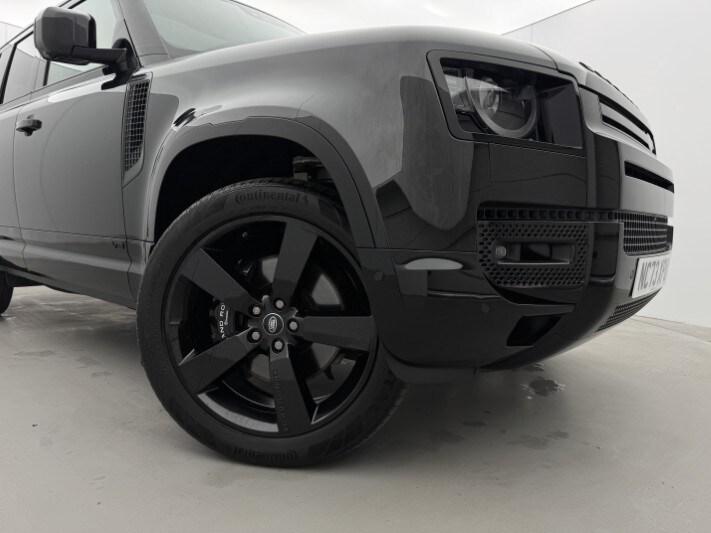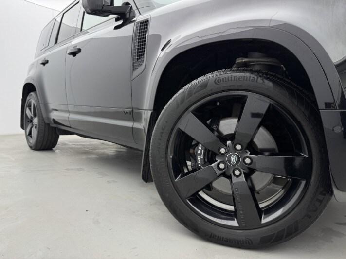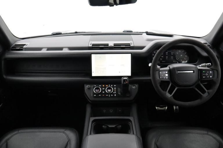 Here at Lloyd Land Rover Newcastle, we are proud to present this commanding Land Rover Defender 5.0 P525 V8 110, which comes with the reassurance of the manufacturers warranty until November 2026, which we will extend to provide a full 12 months warranty for complete peace of mind. This Defender is finished in the refined Santorini Black with a luxurious Ebony perforated Windsor leather interior, perfectly embodying the fusion of raw power and refined sophistication. First registered in November 2023, this one-owner example has covered 32,989 miles and benefits from a full service history. At its heart lies a formidable 5.0-litre supercharged V8 engine, delivering exhilarating performance with a 0 60mph sprint in just 5.2 seconds, while its all-wheel drive capability ensures supreme confidence across all terrains. This exceptional Defender is equipped with an outstanding specification, including a sliding panoramic sunroof that fills the cabin with natural light, a black exterior pack and 22'' 5-spoke gloss black alloy wheels that enhance its bold and purposeful stance, and an extended leather upgrade that elevates the interior to new levels of luxury. Comfort is paramount with heated and cooled front seats, a heated steering wheel, driver and passenger memory seats, and three-zone climate control, ensuring every journey is tailored to perfection. Advanced technology such as the 3D surround camera, Navigation Pro, voice control, and seamless Apple CarPlay and Android Auto integration keep you connected and in command, while the Meridian surround sound system delivers an immersive audio experience. Practicality meets innovation with the electrically deployable towbar, and safety is enhanced through features including blind spot assist and cruise control with speed limiter. Combining iconic design, thrilling V8 performance, and cutting-edge technology, this Defender delivers an unforgettable driving experience both on and off the road. With 33 Retailers across the North of England, you can collect your used car from any Lloyd Motor Group retailer. Your used car from Lloyd Land Rover Newcastle could be closer than you think.