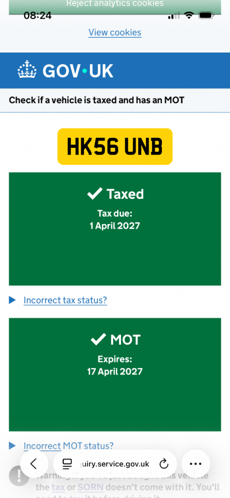 This vehicle has not been reported stolen, scrapped, exported or flagged as unroadworthy.