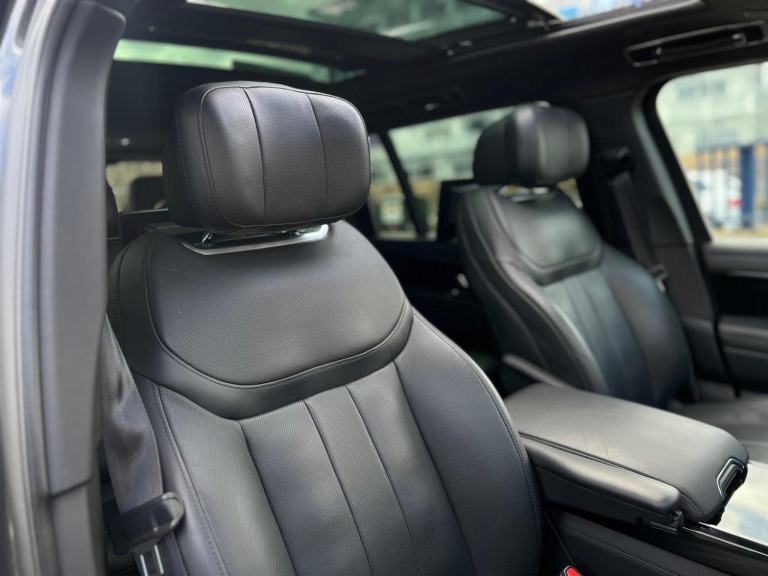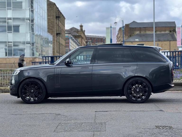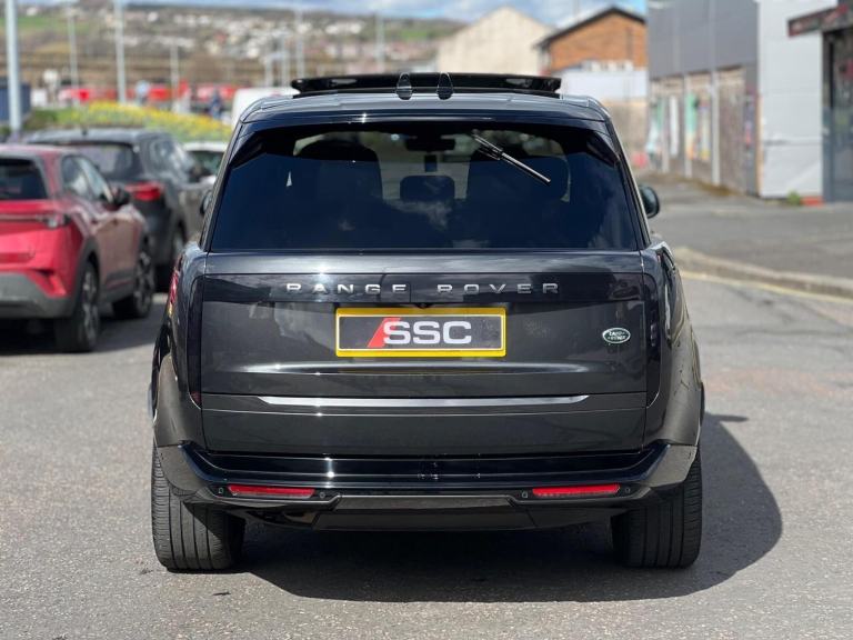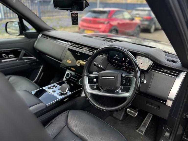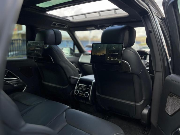 Stunning Range Rover Autobiography D350 LWB 7 Seat Finished In Santorini Black With Caraway Perforated Semi Aniline Leather Interior. Fantastic Spec Inc: 11.4" Rear Entertainment System, Electric Side Steps, 23" Gloss Black Alloys, Shadow Exterior Pack, Wood/Leather Steering Wheel Heated, Privacy Glass, Meridian Signature Sound System, 24 Way Heated and Cooled Front Seats With Massage, Heated and Ventilated Second Row Seats, Heated Third Row Seats, SV Bespoke Full Extended Leather Upgrade, SV Bespoke Carpet Mats, Digital LED Headlights With Image Projection, Sliding Panoramic Sunroof, Black Calipers, Head Up Display, Apple CarPlay, Android Auto, Pivi Pro, Soft Close Doors, Keyless Entry, Power Gesture Tailgate, ClearSight Interior Rear View Mirror, 3D Surround Cameras, Lane Keep Assist, Park Assist, Blind Spot Assist, Adaptive Cruise Control With Steer Assist, All Wheel Steering. This D350 7 Seater Comes With Remainder Of Manufacturers Warranty. VAT QUALIFYING.